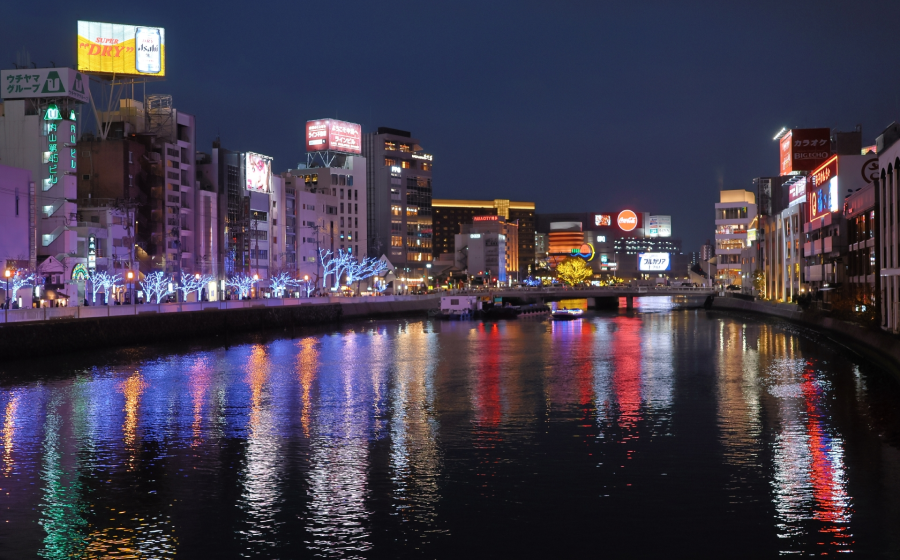 中洲エリアは、夜の福岡のにぎわいを感じられる名所。屋台が立ち並ぶ川沿いの風景や、ライトアップされた橋を眺めながらの散歩は、旅情たっぷり。福岡ならではの雰囲気を肌で感じられるナイトスポットです。