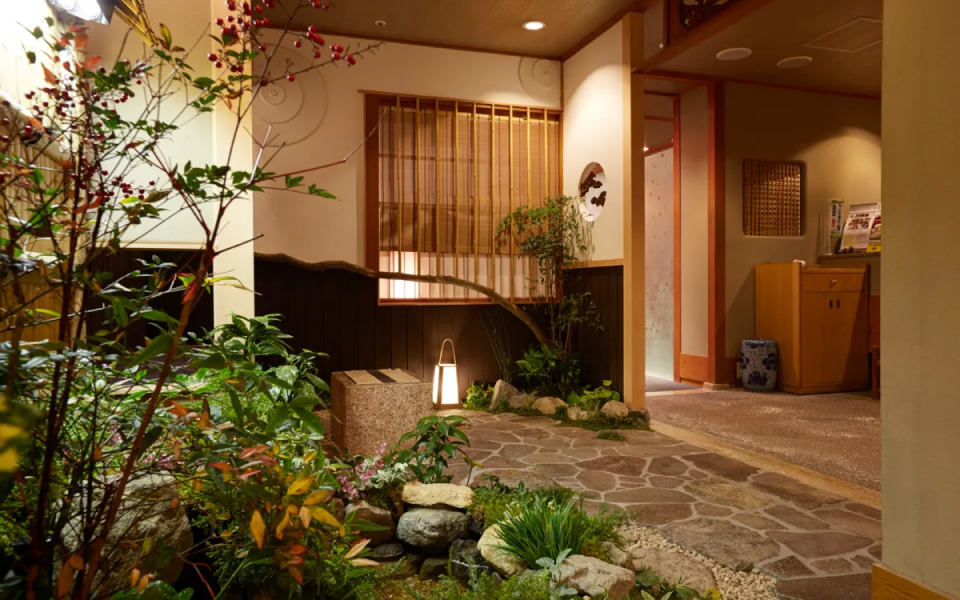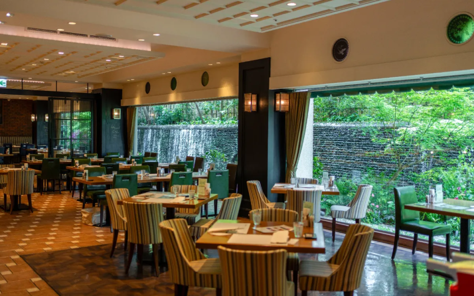 お子様から年配の方まで、年代を問わず愉しめる趣向を凝らしたお料理内容。季節の花々がある美しい庭と滝が眺められる店内は、お洒落でゆったり寛げる、落ち着いた雰囲気です。