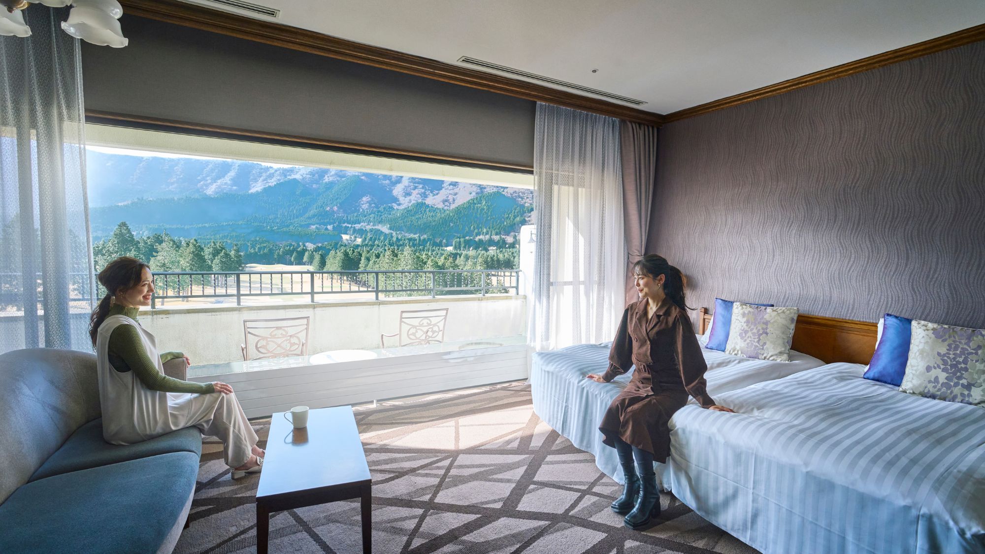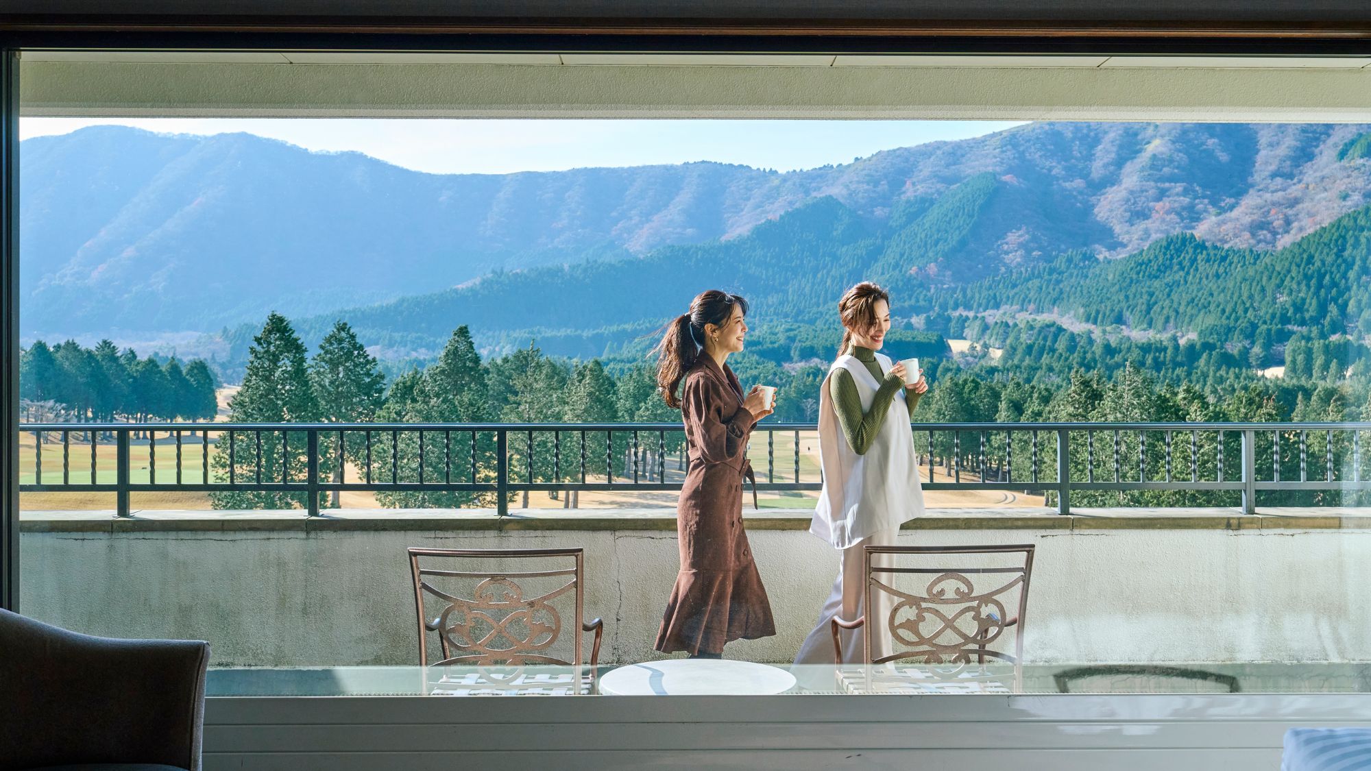 【バルコニー プレミア】広々とした空間のバルコニーで、仙石原の眺望を堪能でき、心豊かな時間をご提供い