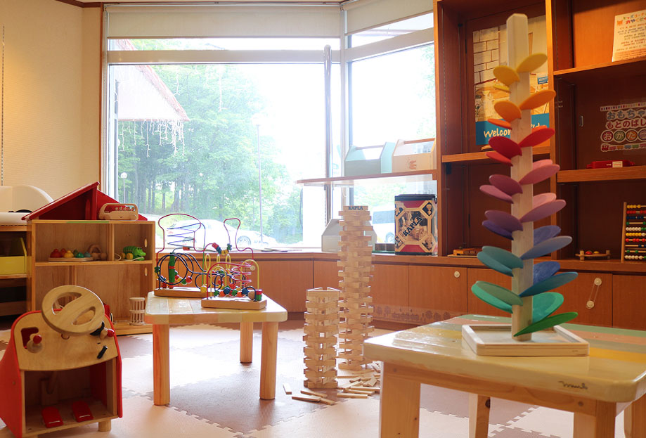 積み木やかわいい絵本など、触って楽しい・見て楽しい魅力的な遊具がずらり。おむつ交換台や授乳スペースも設けているので、小さなお子さまをお連れも安心してご利用ください。