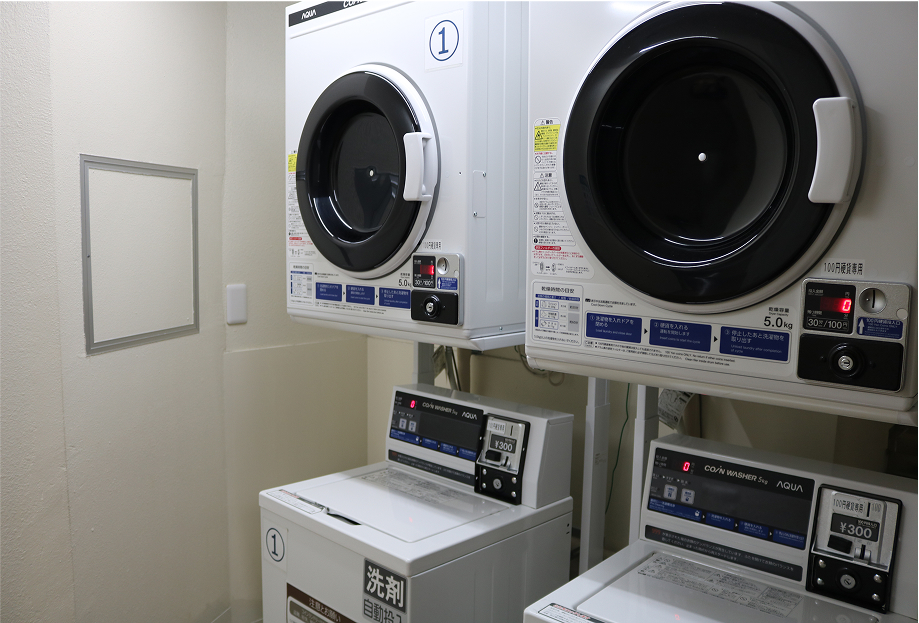 館内には、コインランドリー(2台)を完備。長期滞在やお子さま連れのご家族にも便利にご利用いただけます。(9時~17時受付終了/予約制)