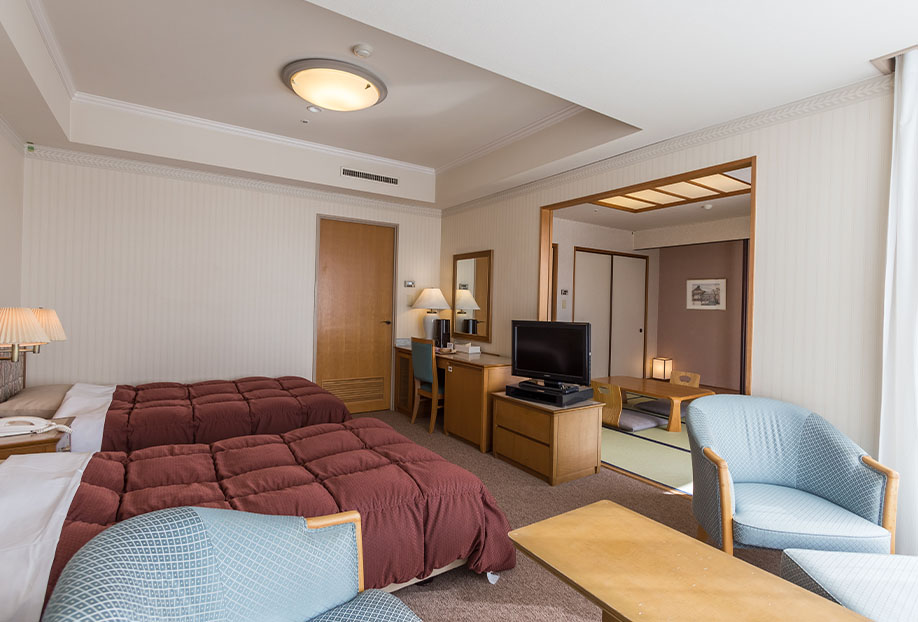 小さなお子様連れも安心な和洋室。2間あるので、三世代旅行にも好評。
