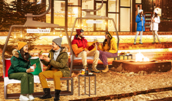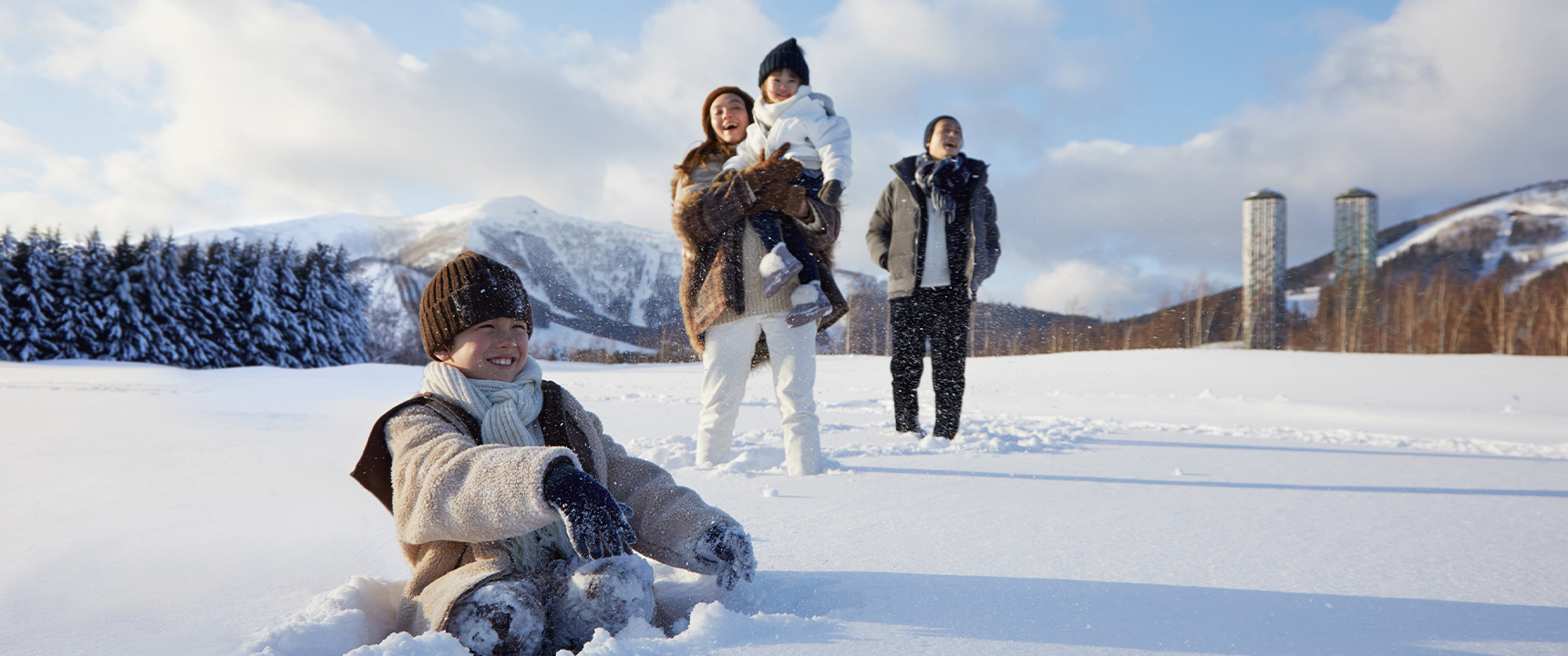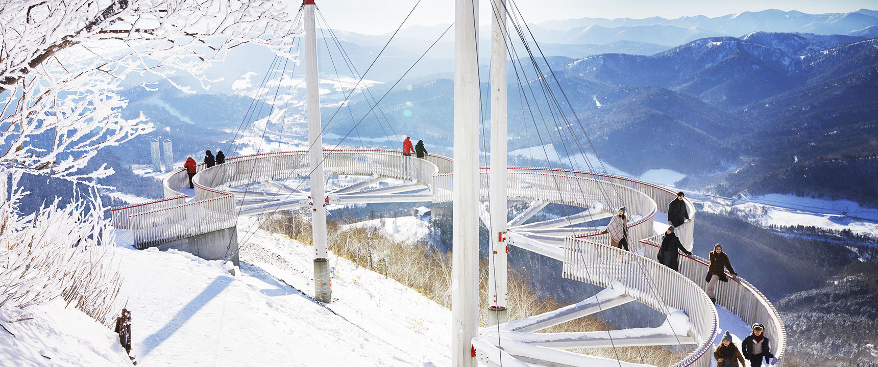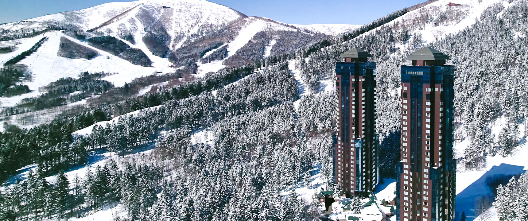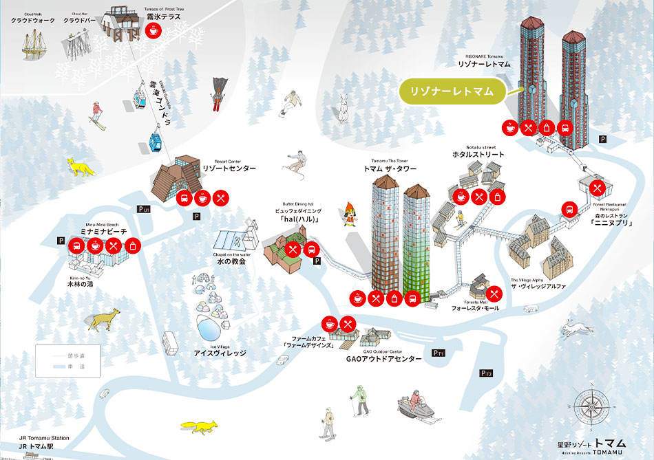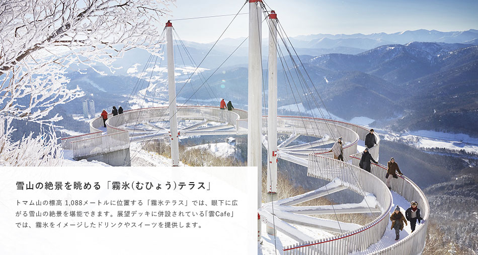 新千歳空港から車100分、札幌から特急100分、トマム駅から無料送迎バス5分。