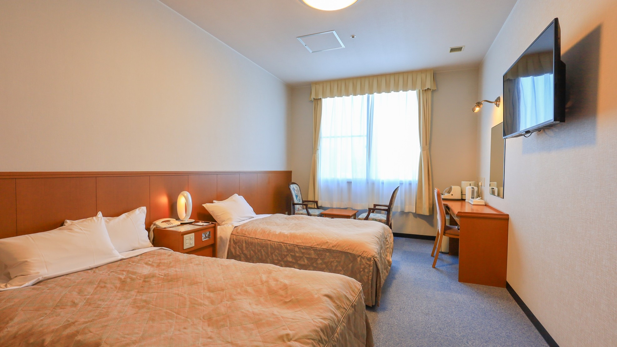 ■ベッド幅110cm×2台■3名様利用の場合はエキストラベッドが入ります■テーブル・椅子2脚■ユニットバス・洗浄機能付トイレ■個別空調■壁掛液晶TV※当プランでは部屋(客室)の提供はございません。
