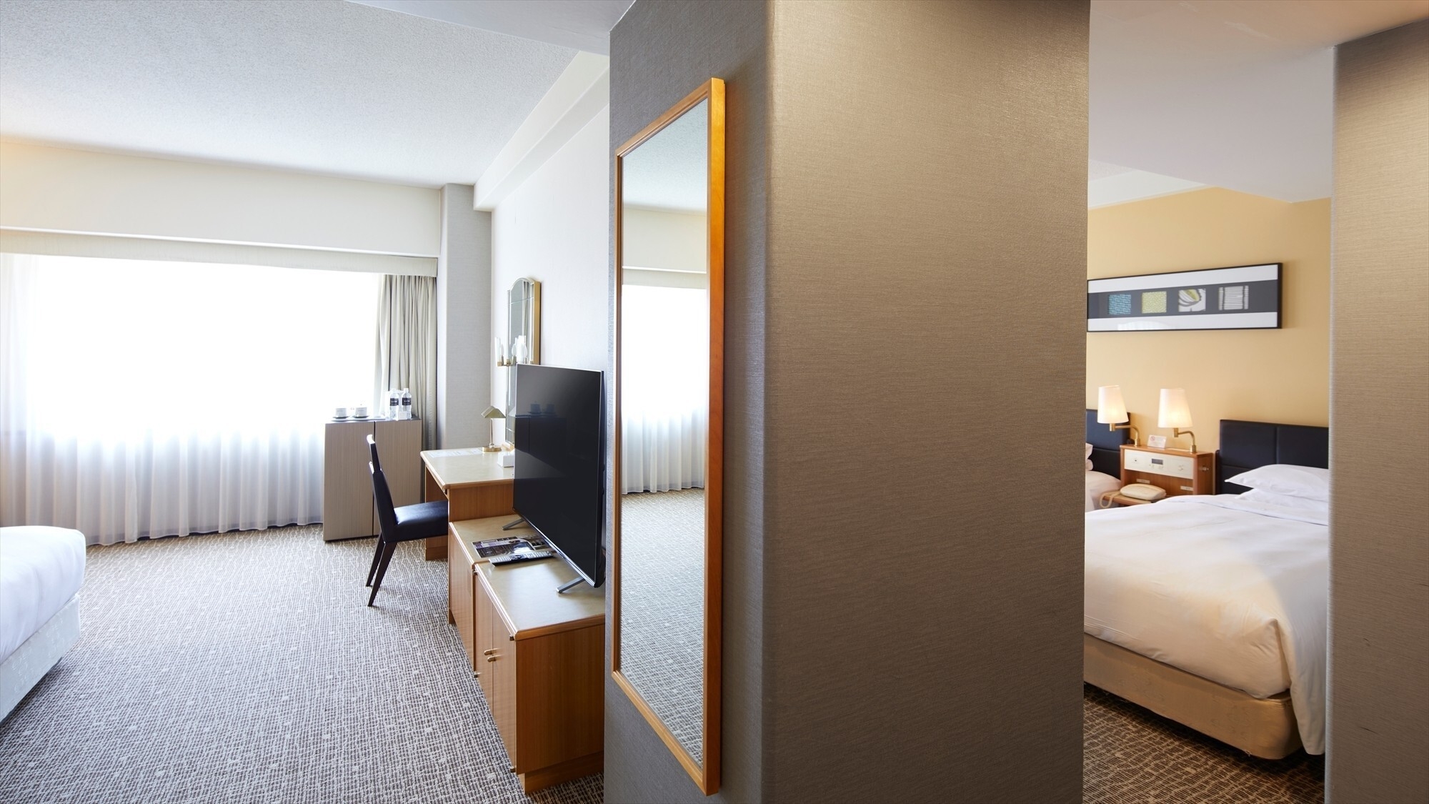 〇4階〇ジュニアスイート53平米〇ベッド幅200cm〇インターネット接続無料(LAN/Wi-Fi)〇加湿機能付空気清浄機完備〇