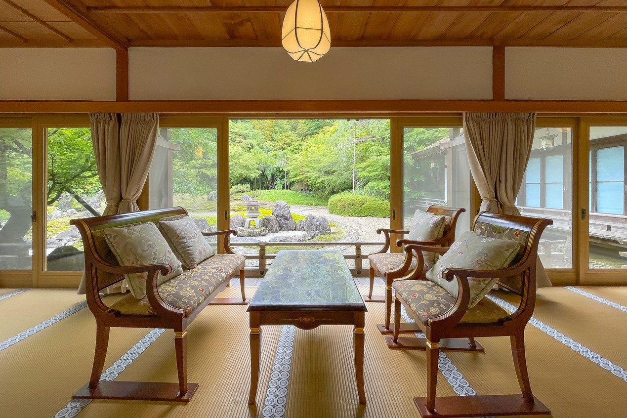 Wi−Fi無料。息を呑むほどの広大で美しい1千坪の庭園が隣接された特別室。 将棋の名人戦で多数利用された歴史あるお部屋です。床暖房あり。