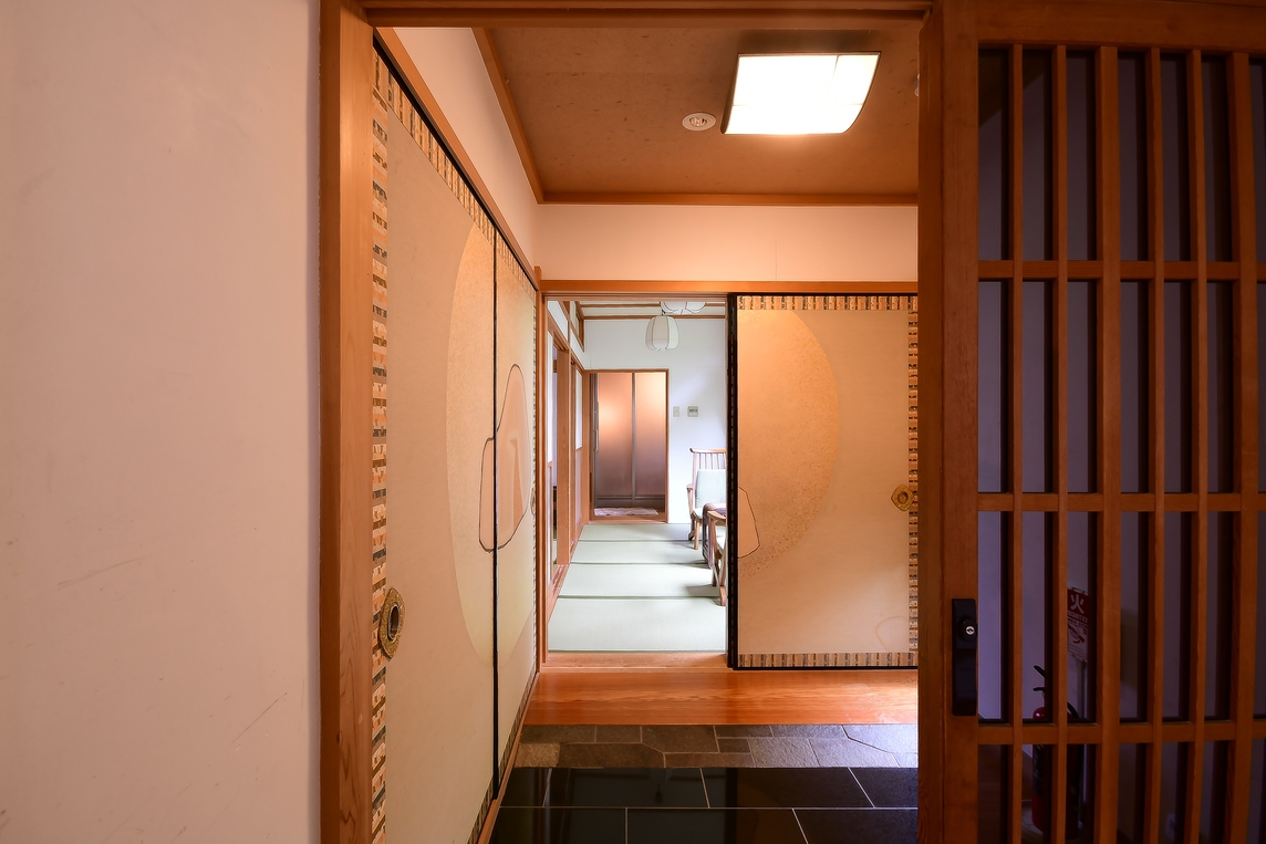 Wi−Fi無料。元々はお茶室だったこの当部屋。襖を閉じればその名の通り、「桜」が現れます。1千坪の庭園も隣接されております。床暖房あり。