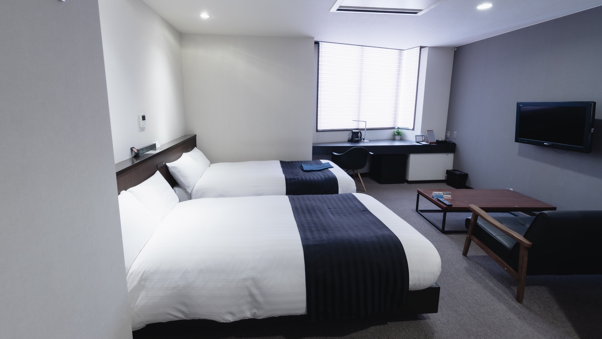 安眠を追及したポケットコイル式Wベッドや硬軟2種類の枕、32インチ液晶テレビ等設置。ゆったりした室内と上質なリラックスソファーで心ゆくまでおくつろぎ下さい。