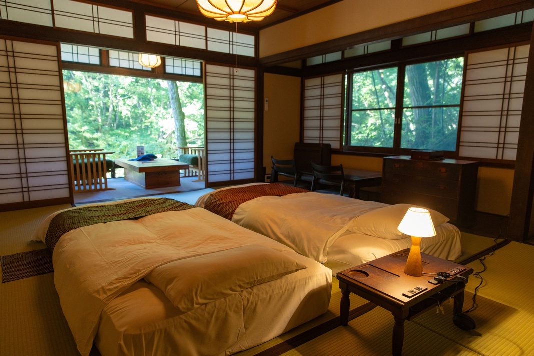大自然溢れる絶景のお部屋で寛いだり、お庭の散策やロビーの囲炉裏で過ごしたり、思い思いのときをお楽しみいただけます。