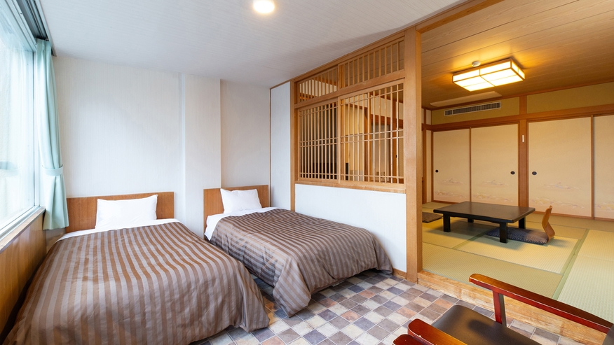 【本館】【上層階・渓谷側】和洋室(ツイン+8畳)には