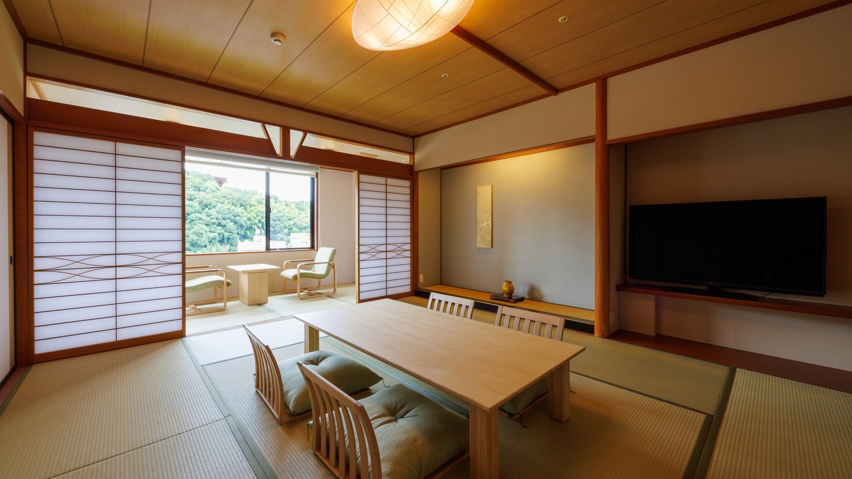 カード式ルームキー・こだわりの美しさ「天童木工家具」・50インチスマートテレビ・バスルーム・温水シャワートイレ(バストイレ別)・冷蔵庫・シリンダー式金庫