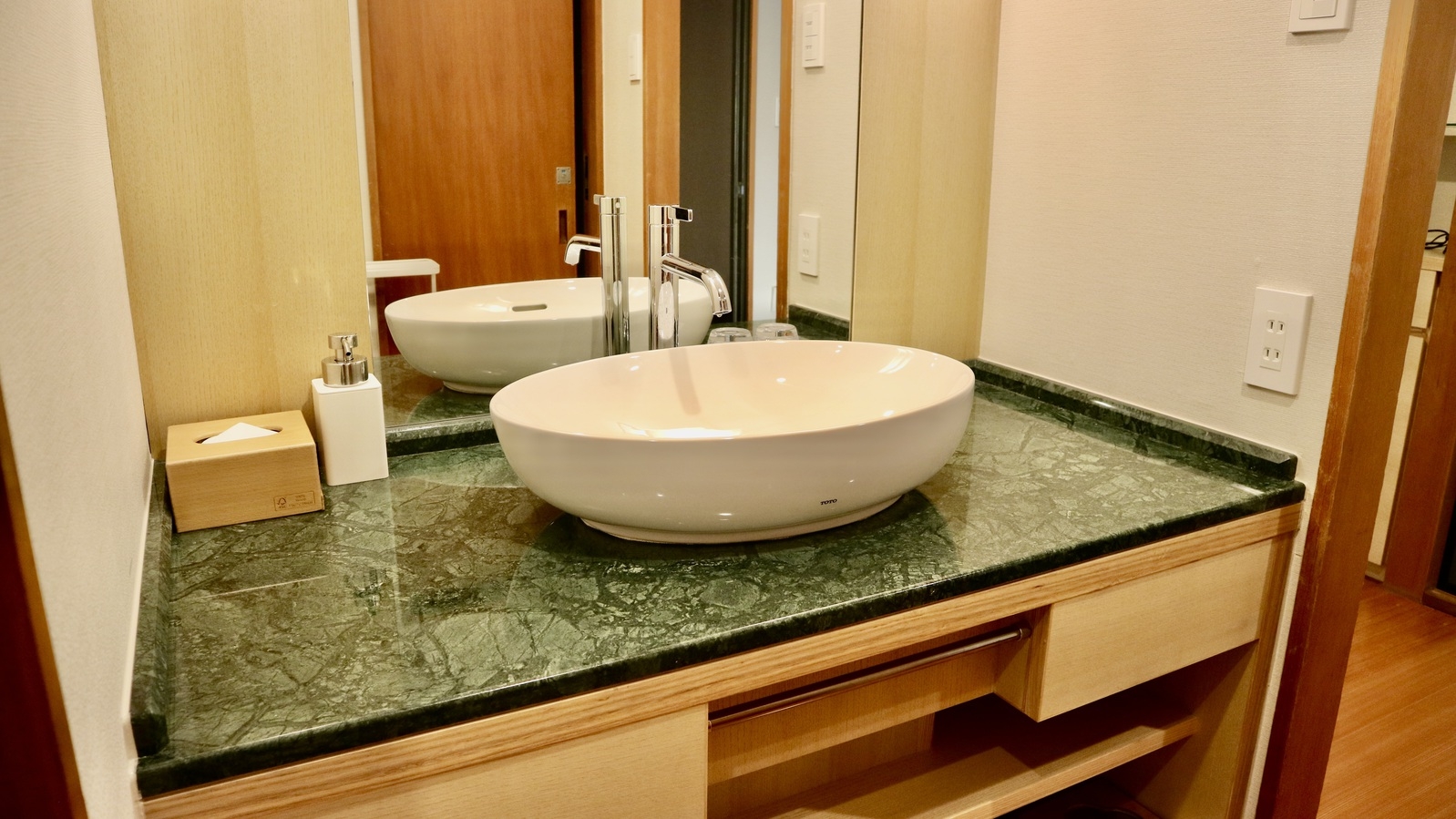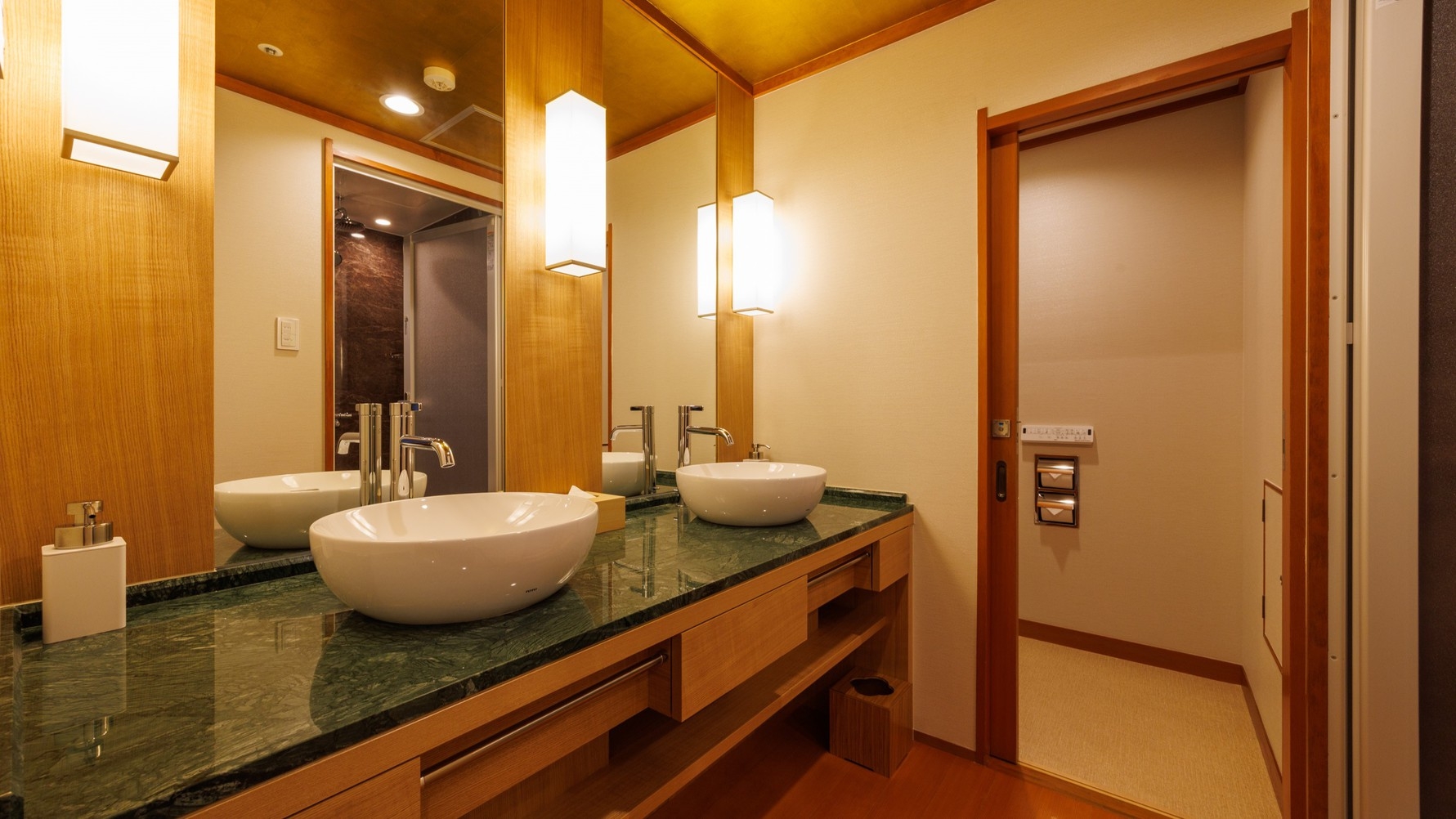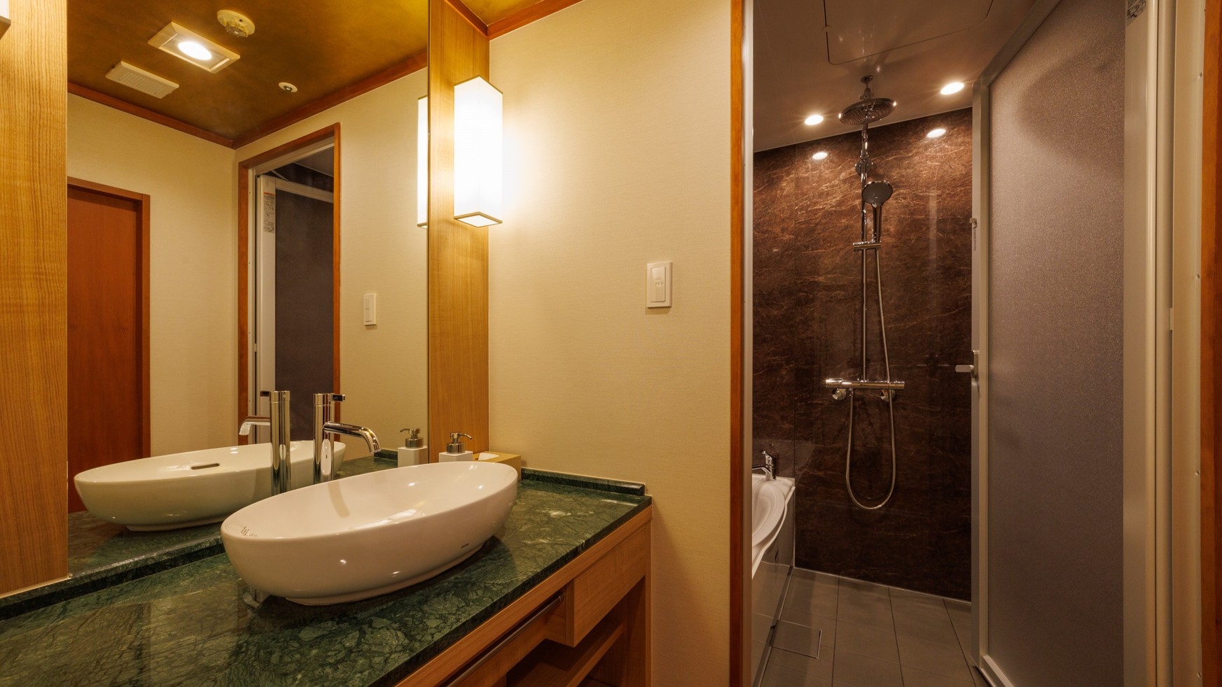 カード式ルームキー・天童木工家具・50インチスマートテレビ・バスルーム・温水シャワートイレ(バス・トイレ別)・洗面2ボウル・冷蔵庫・シリンダー式金庫