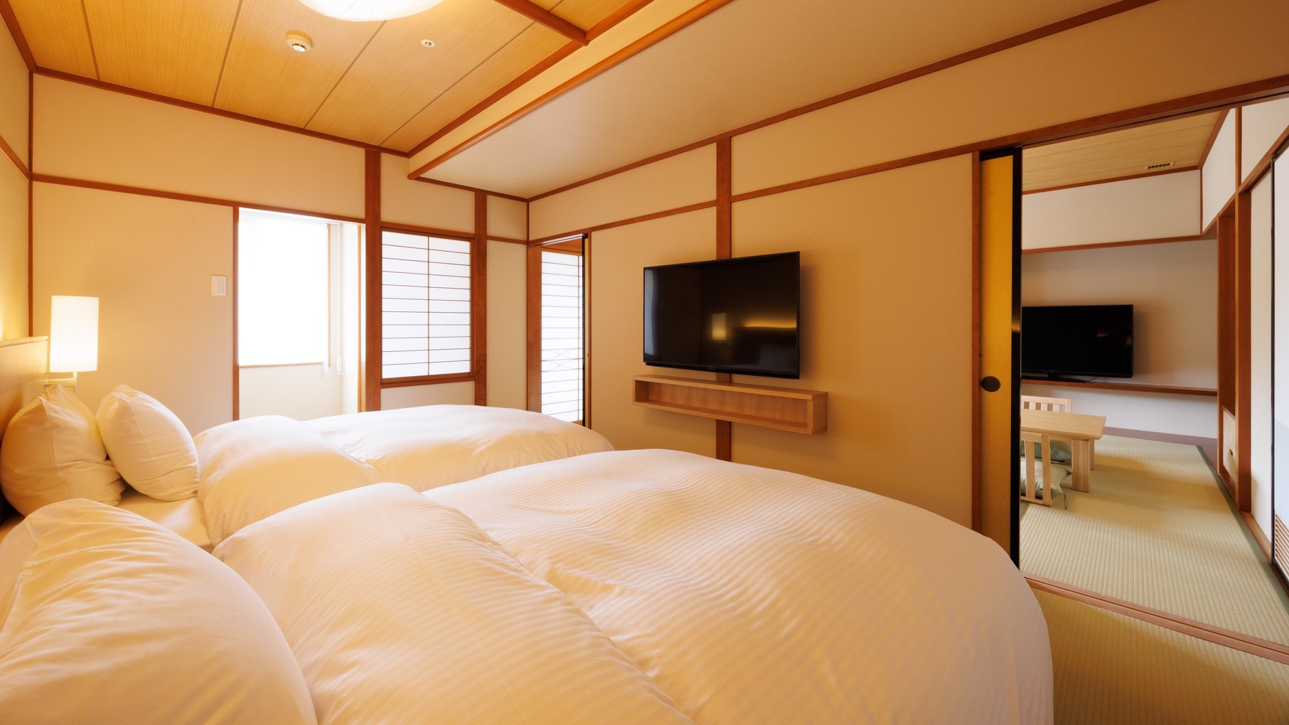 ①客室は2025年リニューアルした和室スーペリアツイン確約