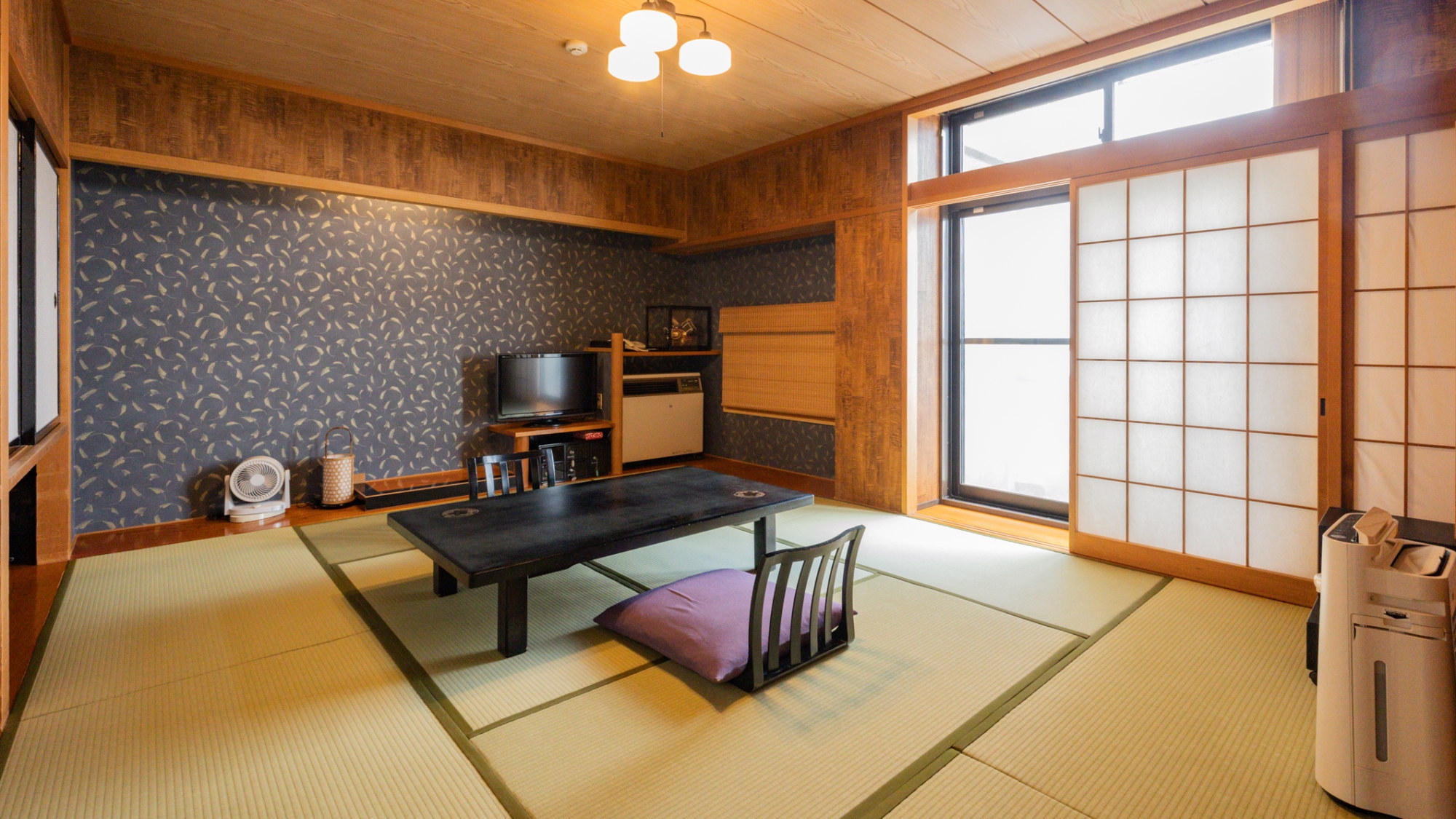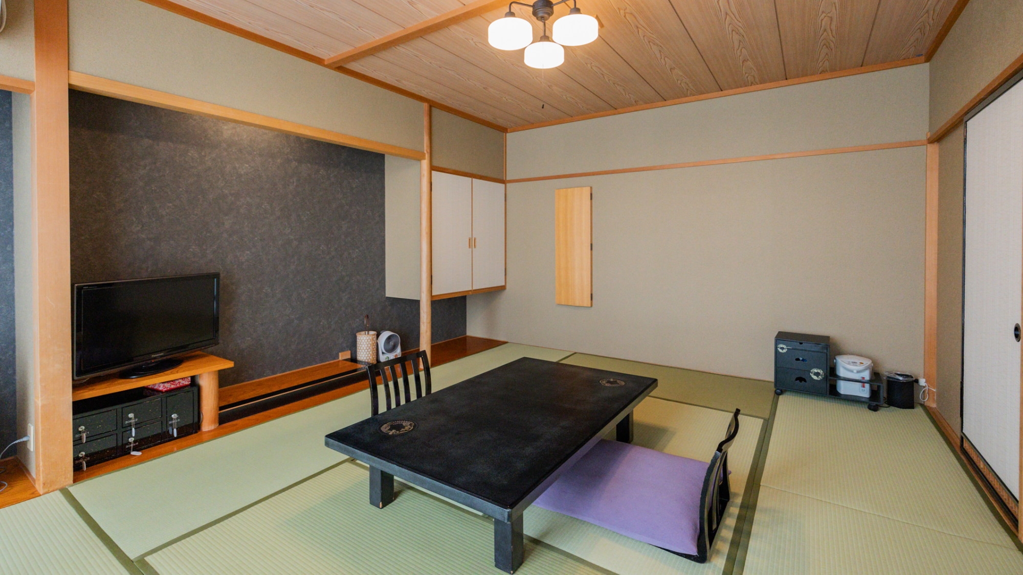 廣美亭でスタンダードな和室のお部屋をご用意します。バスと洗面とトイレがございます。客室は3階ですが、館内にエレベーターはございます。