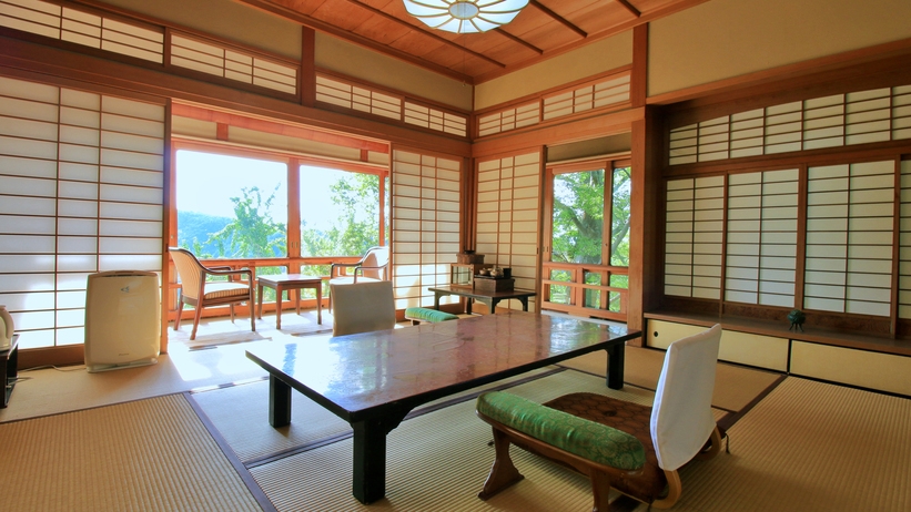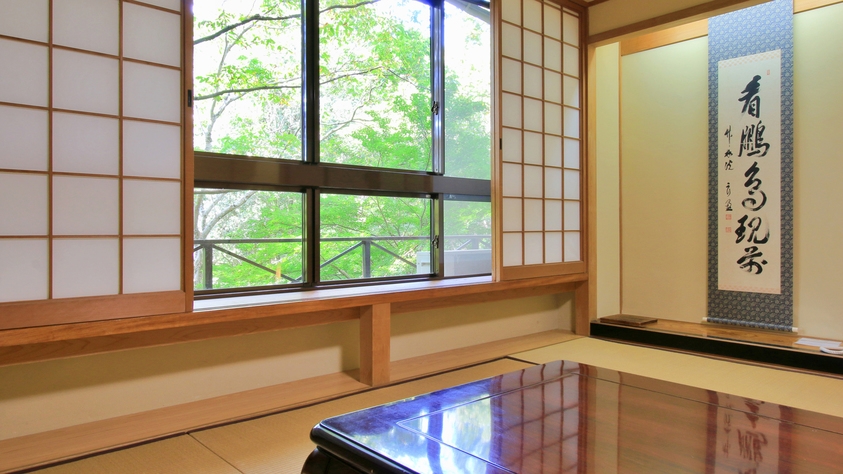縁側からの四季折々の景色が味わい深い特別室です。皇室にもご宿泊を承った由緒あるお部屋となります。