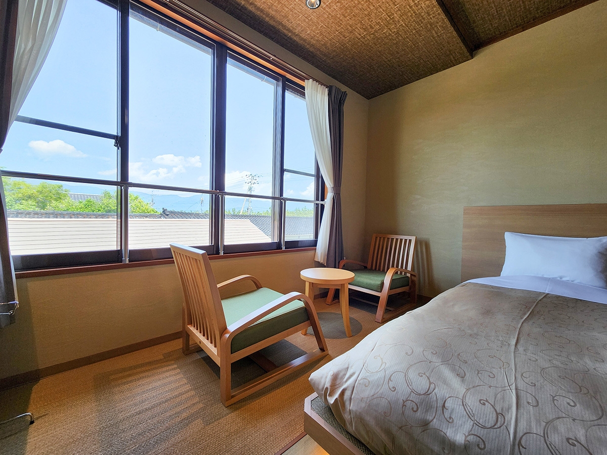日本建築の趣を残しつつ現代風な感性を取入れたお部屋。こちらは畳の上に布団を敷いてご就寝いただく、ベーシックな和室です。加湿機能付き空気清浄機完備。