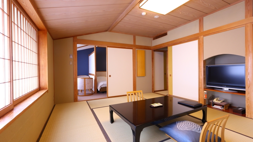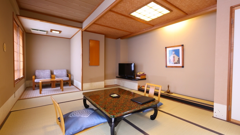 12.5畳の本間に次の間と掘り炬燵のスペースが付いたお部屋です。