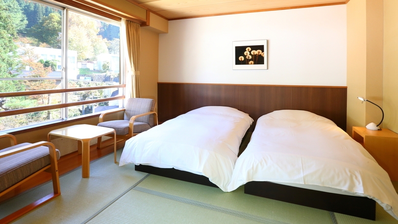 和室10畳の本間とツインのベッドが入った和洋室です。