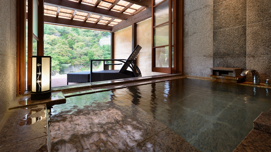 客室付きの露天風呂からは、日本一美しいと言われる