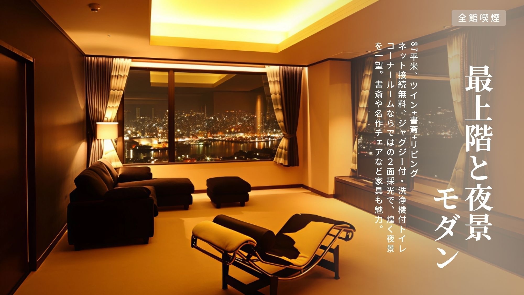 最上階スイートならではの開放的な空間と大きな窓から、100万ドルの夜景を心ゆくまでご堪能いただけます。