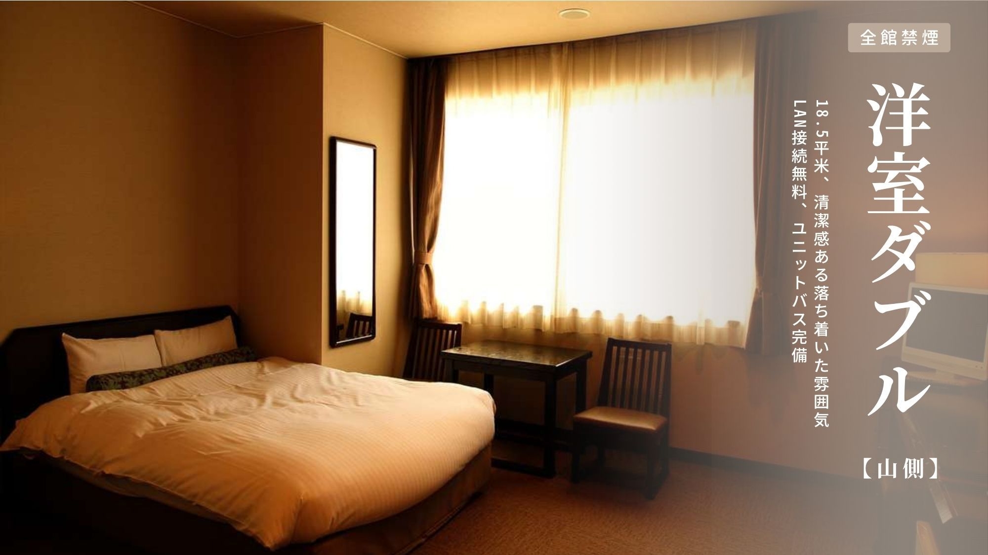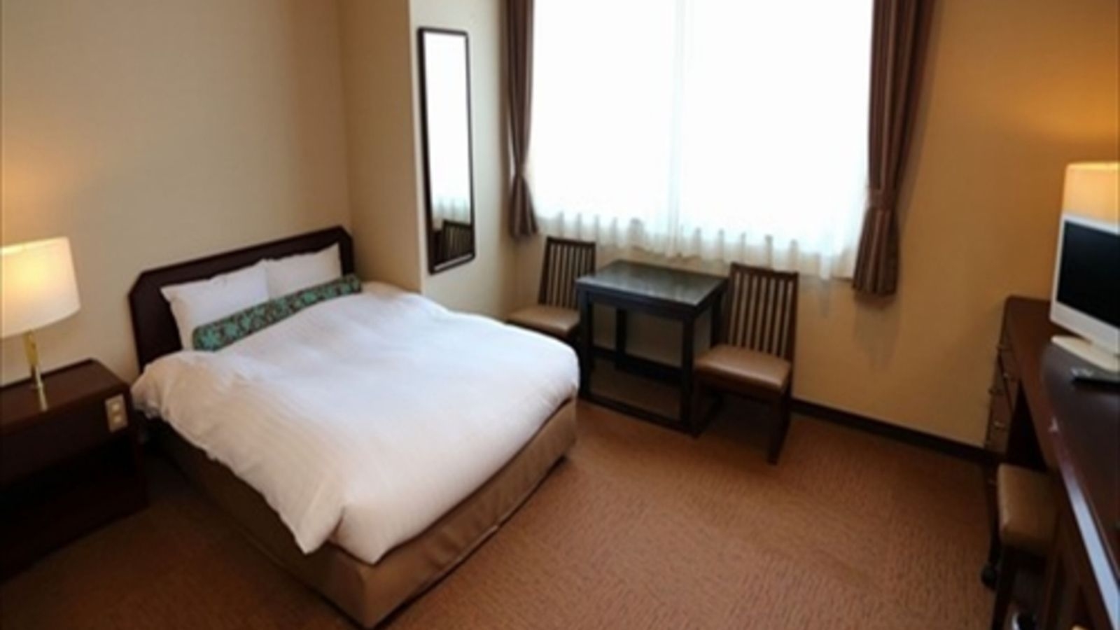 落ち着いた雰囲気で清潔感のあるダブルルーム。LAN接続も無料!