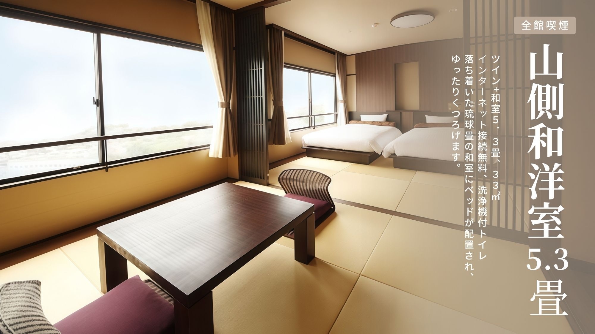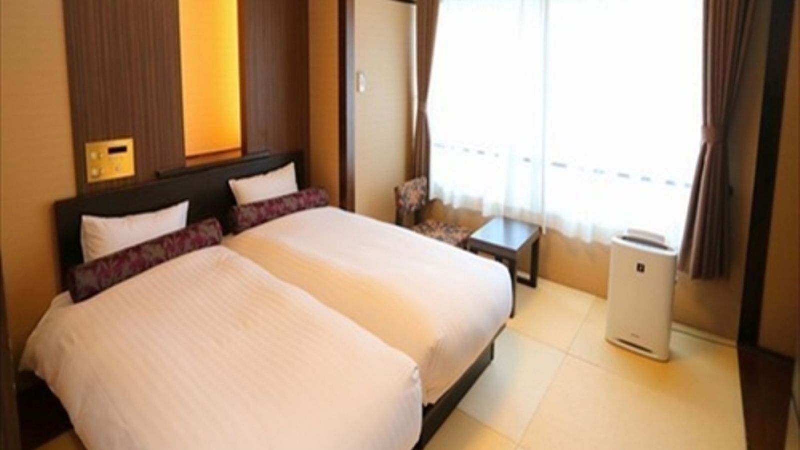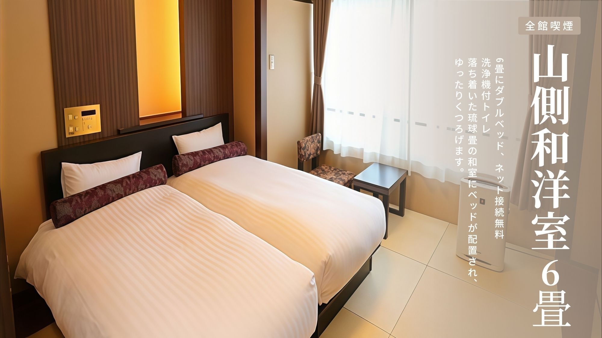 落ち着いた琉球畳の和室にベッドが配置され、ゆったりくつろげます。