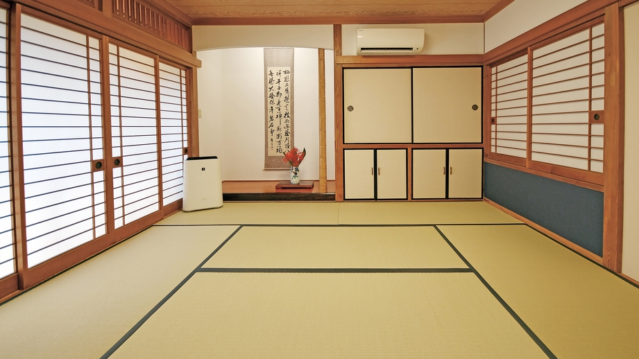 食事は< 食事処 >でのご提供です。広めの間取りで、小さなお子様連れでも安心。家族団らんのひとときを過ごせる和室です。