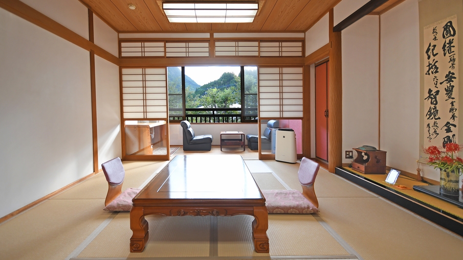 2017年にリニューアルした和洋室「佐嘉の間」。大切な方をもてなして頂きたい空間造りにつとめました。────────────────────episode1 〜「佐賀県産」へのこだわり〜【食】佐賀海苔にはじまり、佐賀牛・みつせ鶏・富士町産棚田米を使用。 また、佐賀の銘酒を常時、十数種ご用意してますのでご注文(有料)頂けます。【座卓】佐賀県産のクス材で作った座卓で、薫り高く食事を楽しんで頂きます。 【和紙】300年の歴史を誇る重要無形文化財「肥前名尾和紙」を随所に使用しております。【4尺酒樽風呂】三日月町の「千代雀酒造」で昭和時代に実際にお酒を造っていた酒樽です。 歴史ある酒樽で、24時間、お好きな時間に源泉かけ流しの古湯温泉をご堪能ください。 ※0〜5時の深夜帯は湯口の温泉は止まりますが、適温を保つよう設定致しております。episode2 〜若旦那こだわりのオーディオ〜JBL4344、マッキントッシュのプリアンプのセット。オーディオの足元には「諸富家具」で特注したテレビ台が鎮座しております。お気に入りのレコードを是非ご持参頂き、”特別な音楽”とともに非日常の1日をお過ごしください。episode3 〜快適な睡眠〜シモンズ製セミダブルベッドを採用しております。総ヒノキ造りのベッドボックスにマットレスを乗せ、足をおろしやすい45cmの高さにこだわりました。■食事 食事処でのご案内となります。【夕食】 ブランド牛:佐賀牛の中でも希少な「イチボ」という部位を 使用した石焼をはじめとする山の幸や旬の食材を用いた 板長厳選のグルメ会席です。─● 注意事項本プランにつきましてはご夕食の最終開始時間は19:00〜となります。19:00以降は対応いたしかねます。【朝食】主役のご飯を引き立てる焼き魚やお漬物・お味噌汁などの和朝食をお召し上がりいただきます。特にこだわりの海苔は宿の一押しです!◇ 温泉 ◇泉質:単純温泉入浴時間/15:00〜22:30・6:30〜10:00【効能】関節リュウマチ/神経痛/五十肩 冷え性/疲労回復/健康増進など
