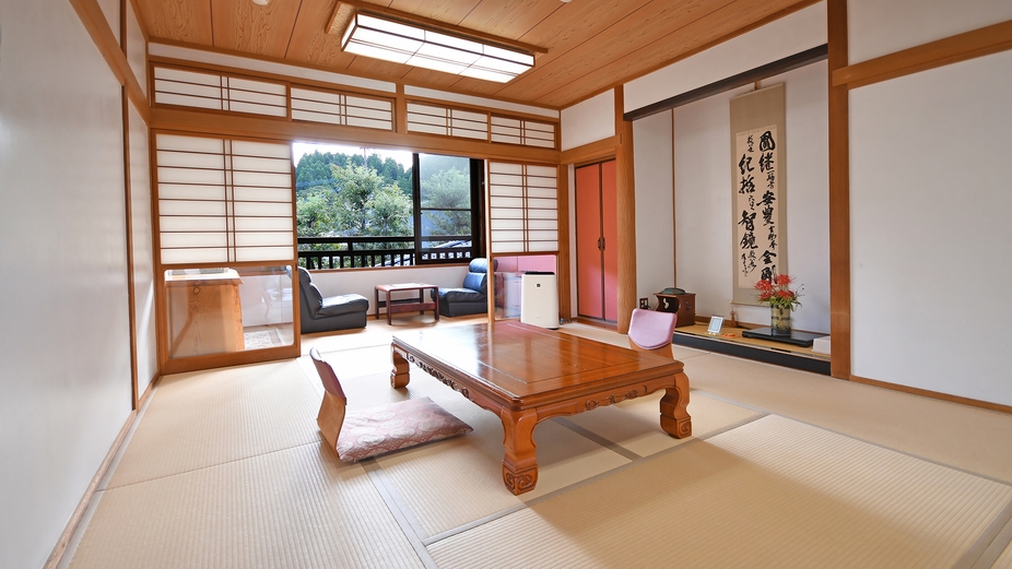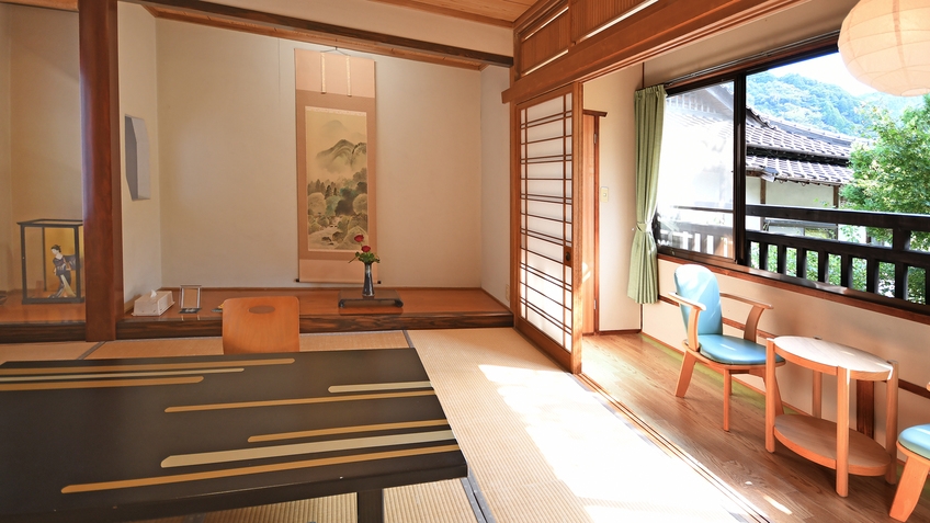 お食事は< 食事処 >にてご用意いたします。やわらかな光とともに、古湯温泉の穏やかな時間が流れる和室です。夫婦水入らずでゆったりとお過ごしいただけます。
