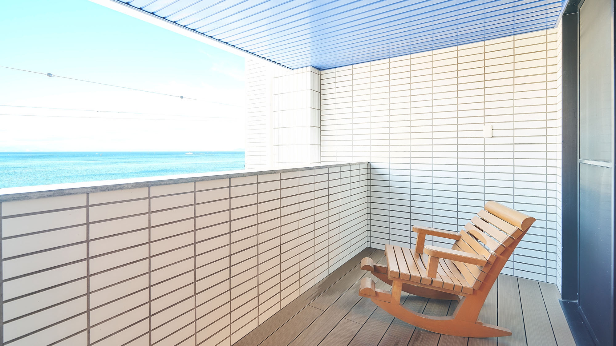海一望のバルコニー付和室12畳+約5畳広縁。お風呂は大浴場をご利用ください