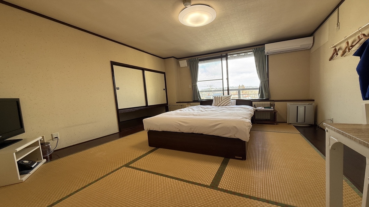 大きめの窓のある少し広めの和室10畳タイプ。贅沢に2人で使うも良し、グループでワイワイ使うもよし。