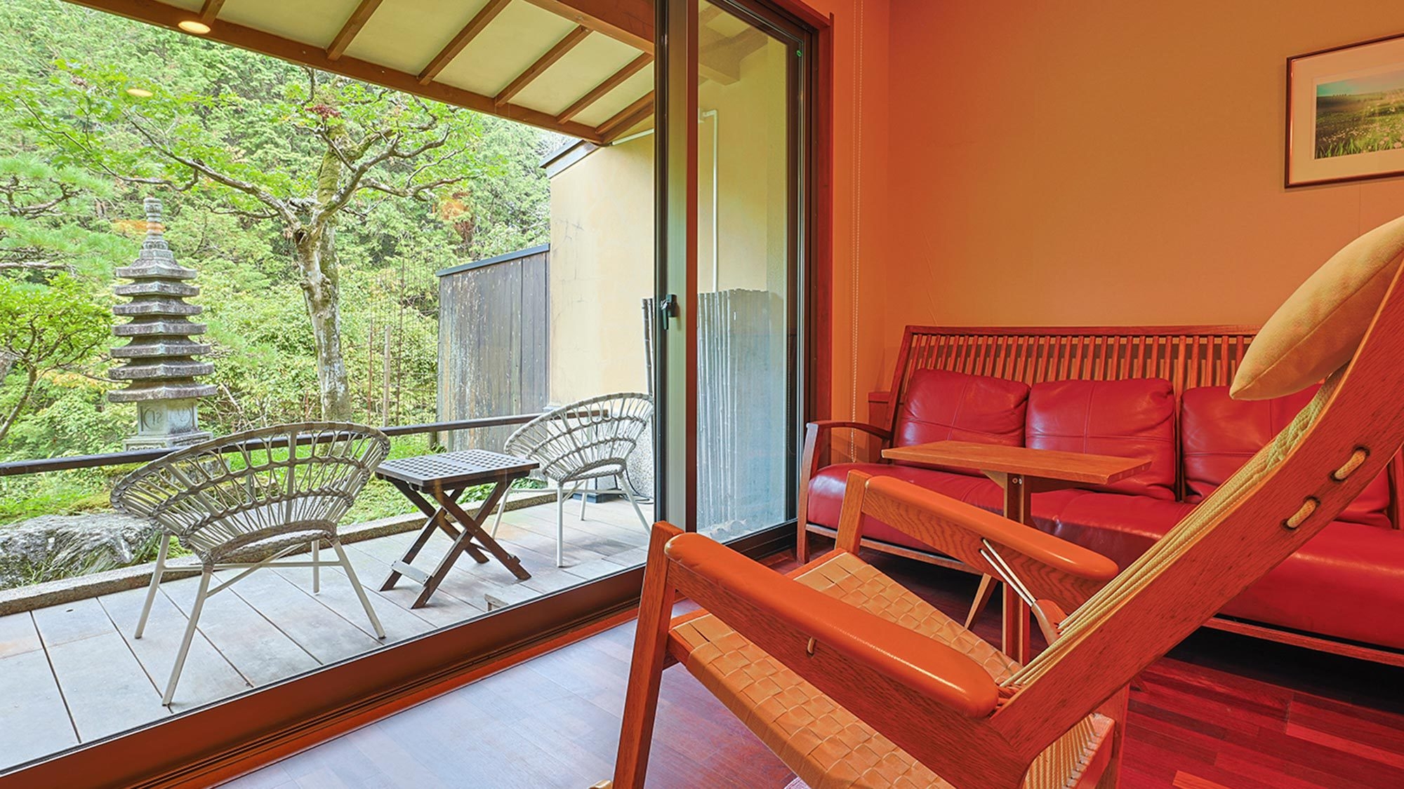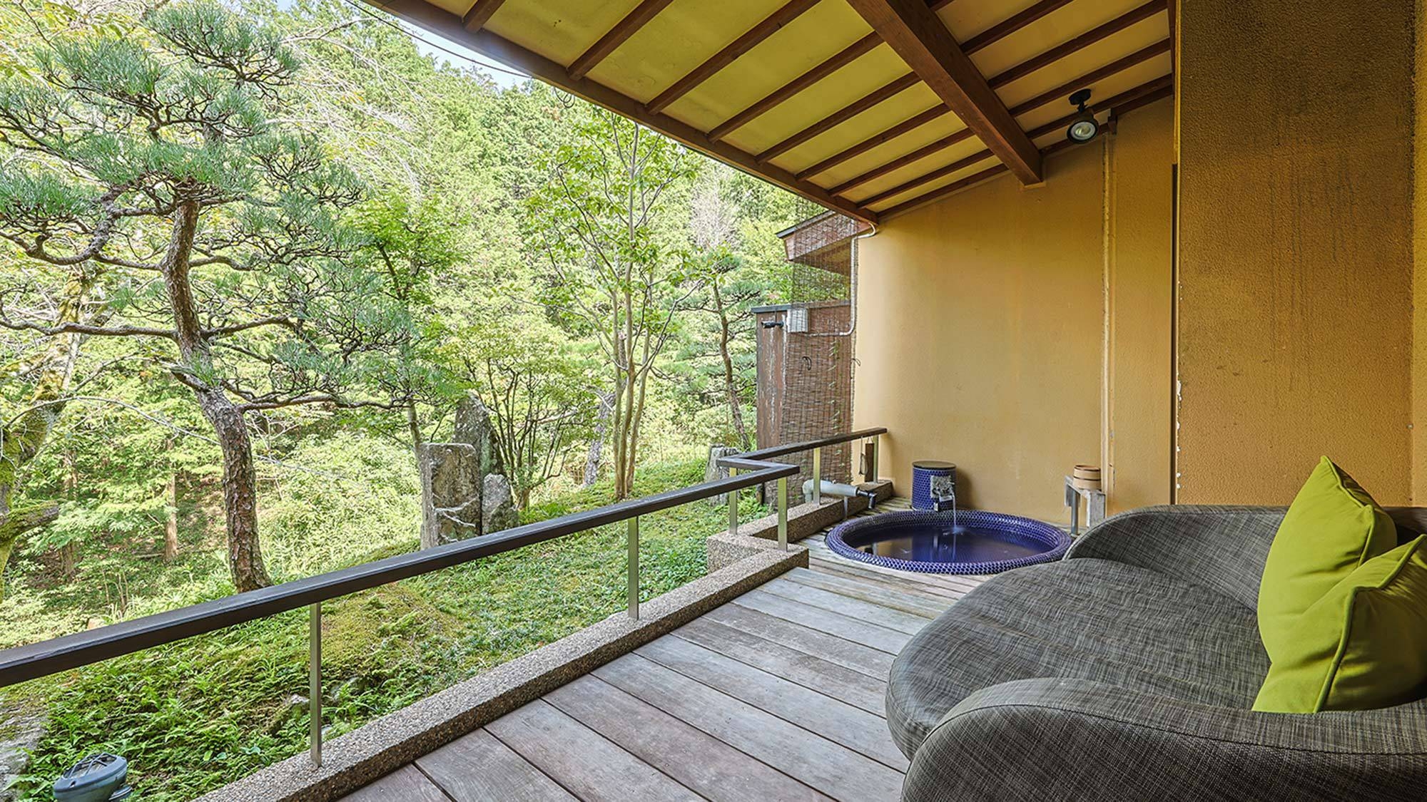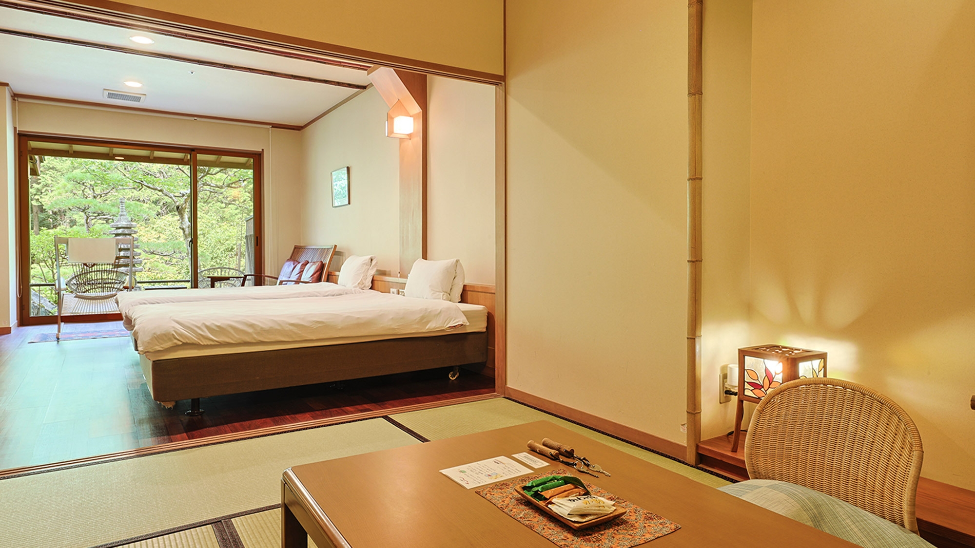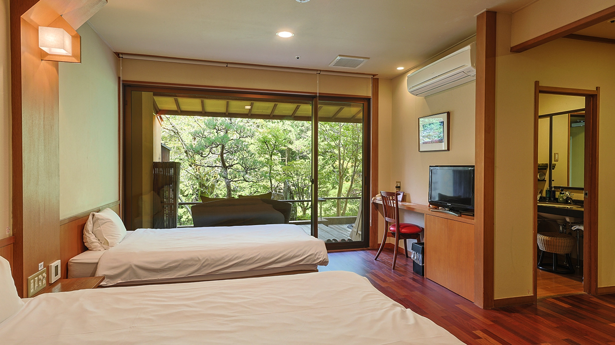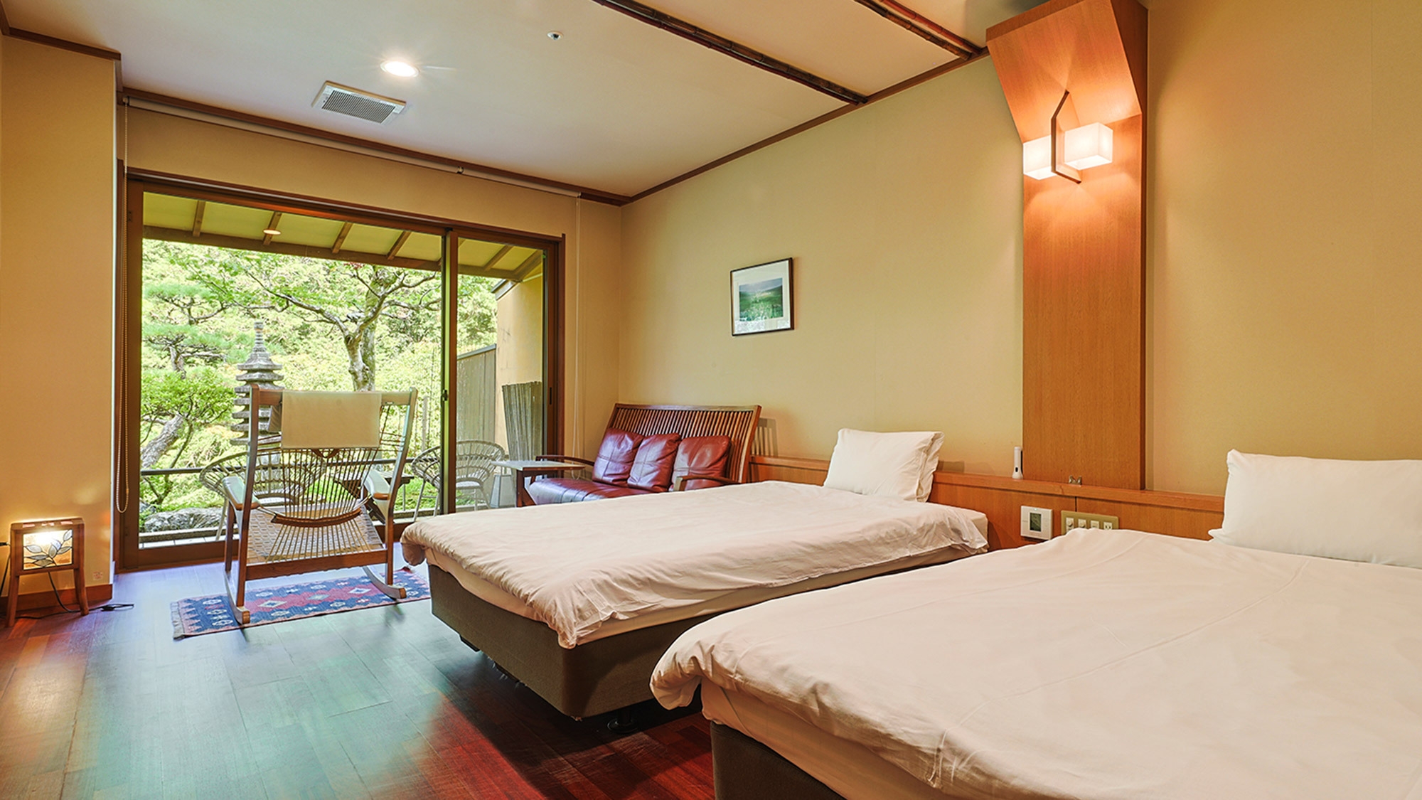 個室展望風呂付+和室6畳+ツインベッド+庭テラス(禁煙)