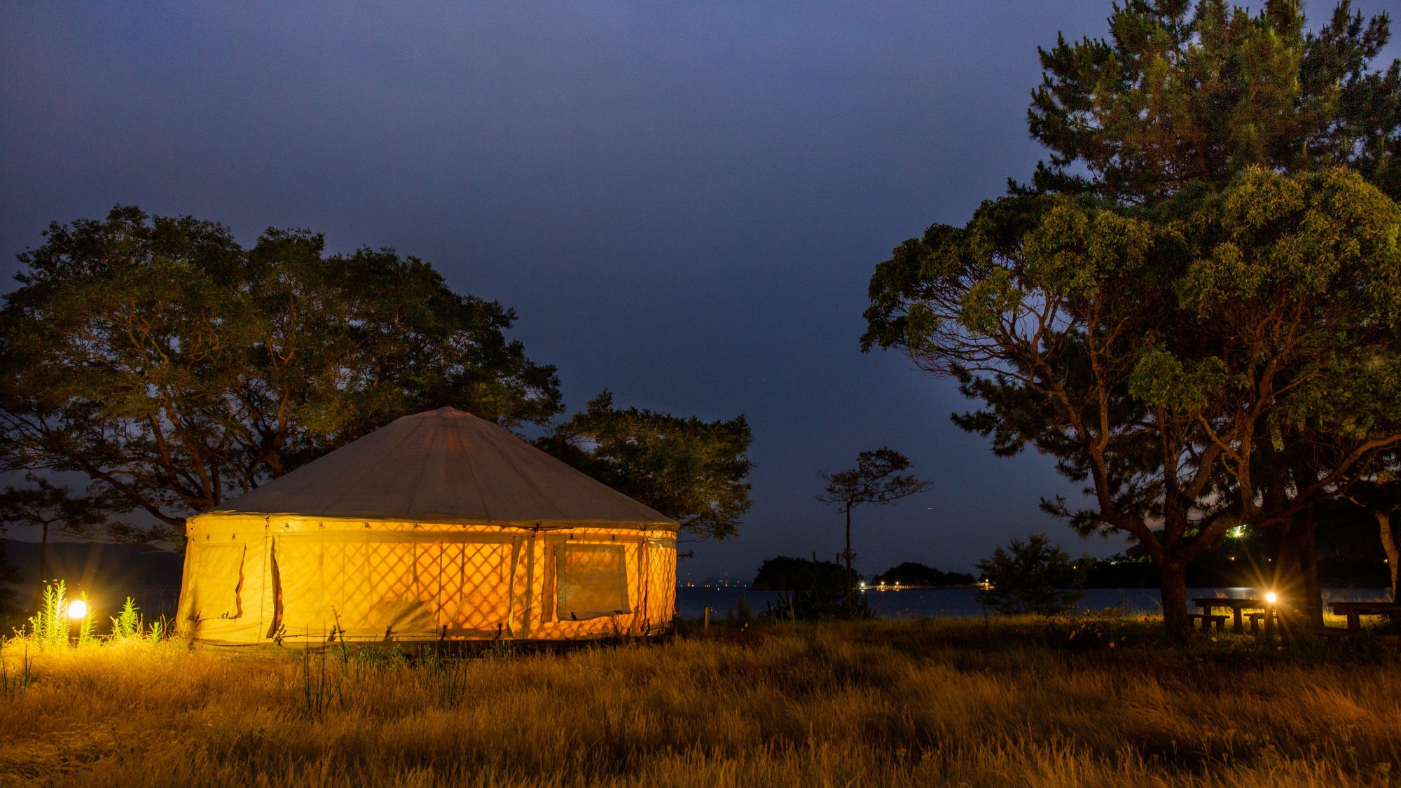 海岸沿いに建つ、モンゴル式テントのパオに宿泊!