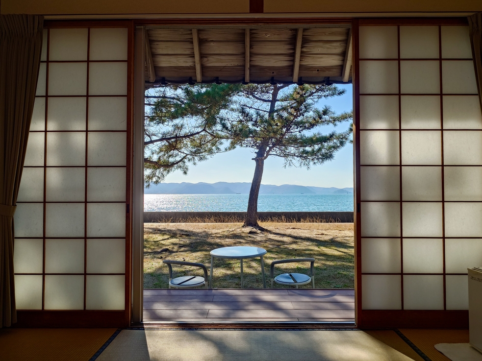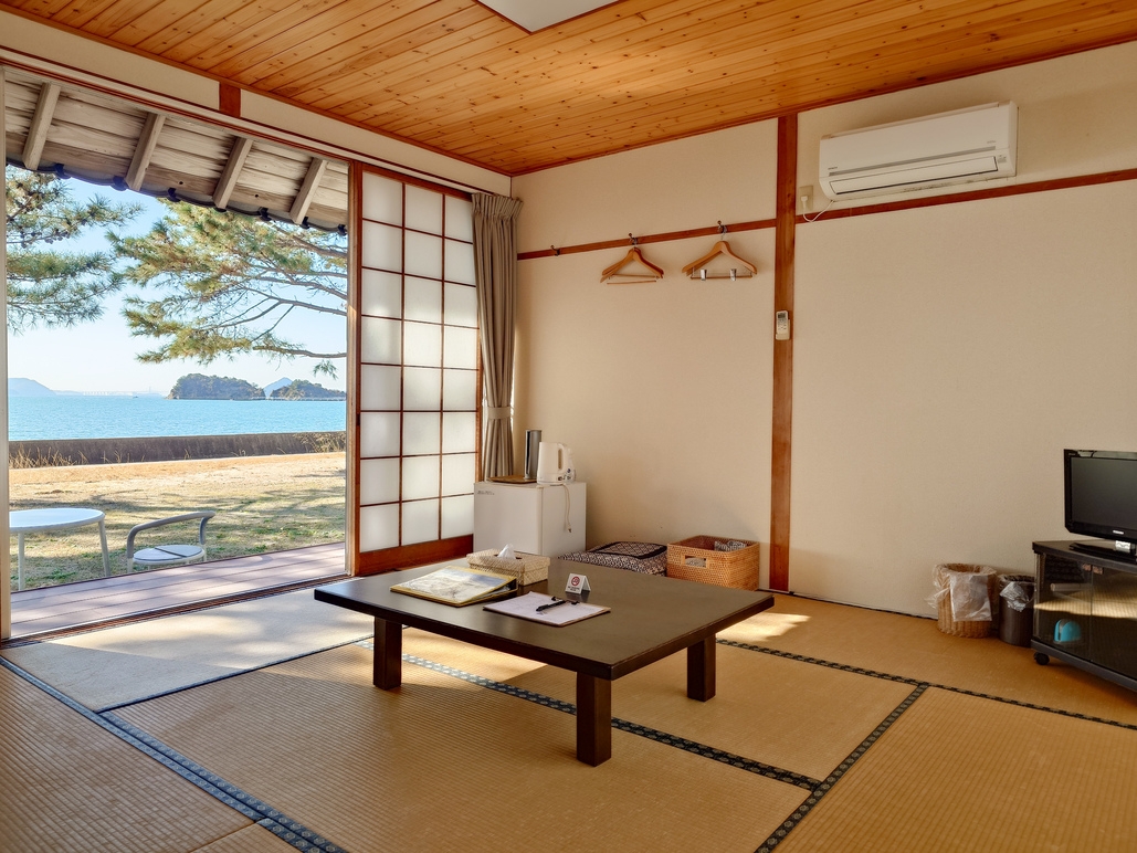 大きな窓からは瀬戸内海が一望でき、畳でのんびりとお過ごしいただけます。