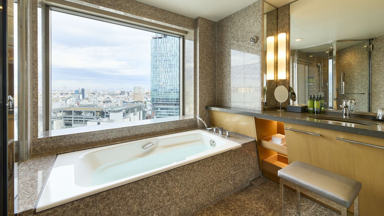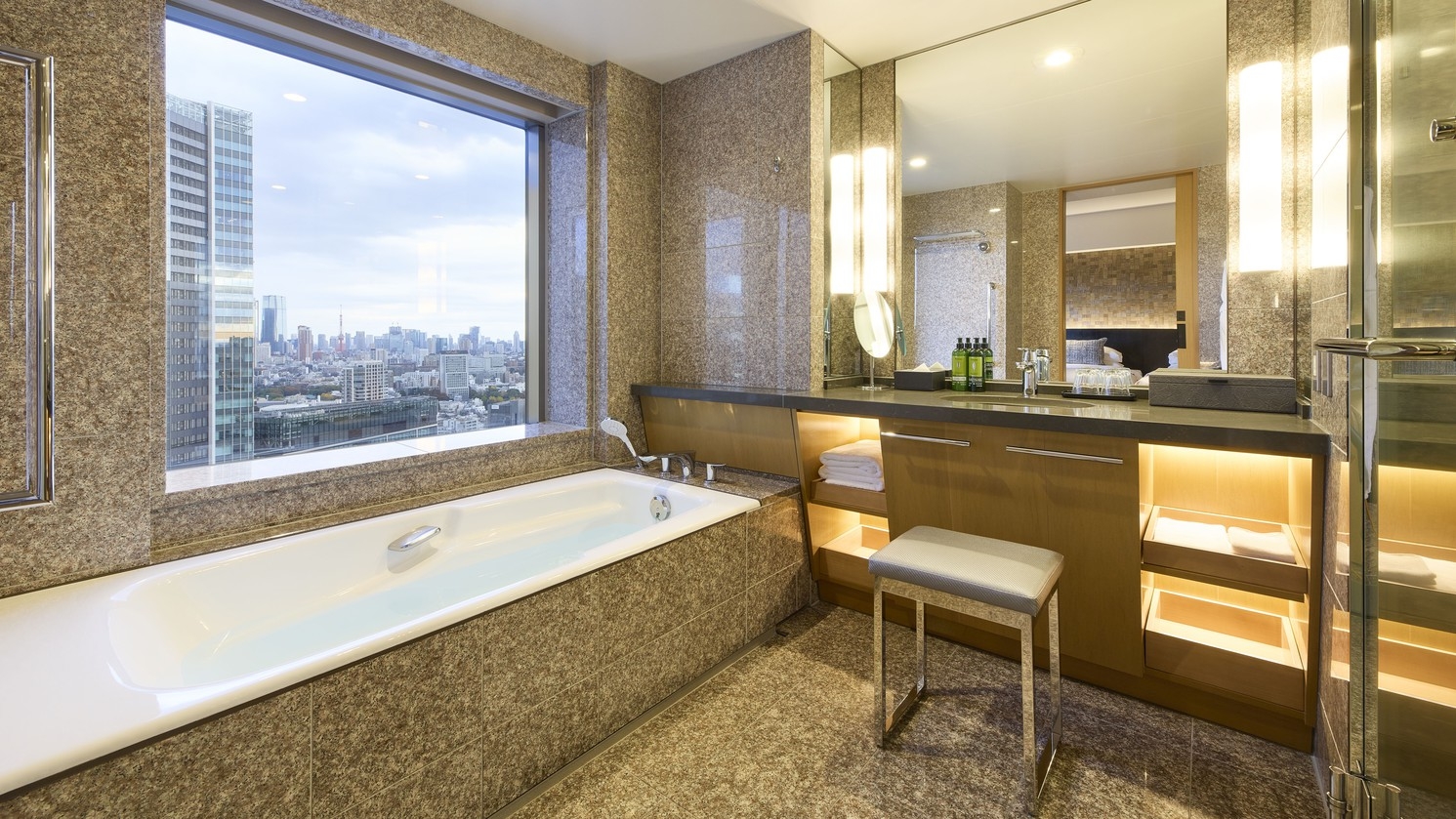 ベッドサイズ:幅240cm × 長さ205cm × 1台 バスルーム:バスタブ脇に大きく窓を設置した人気のビューバスタイプ/独立型シャワーブース