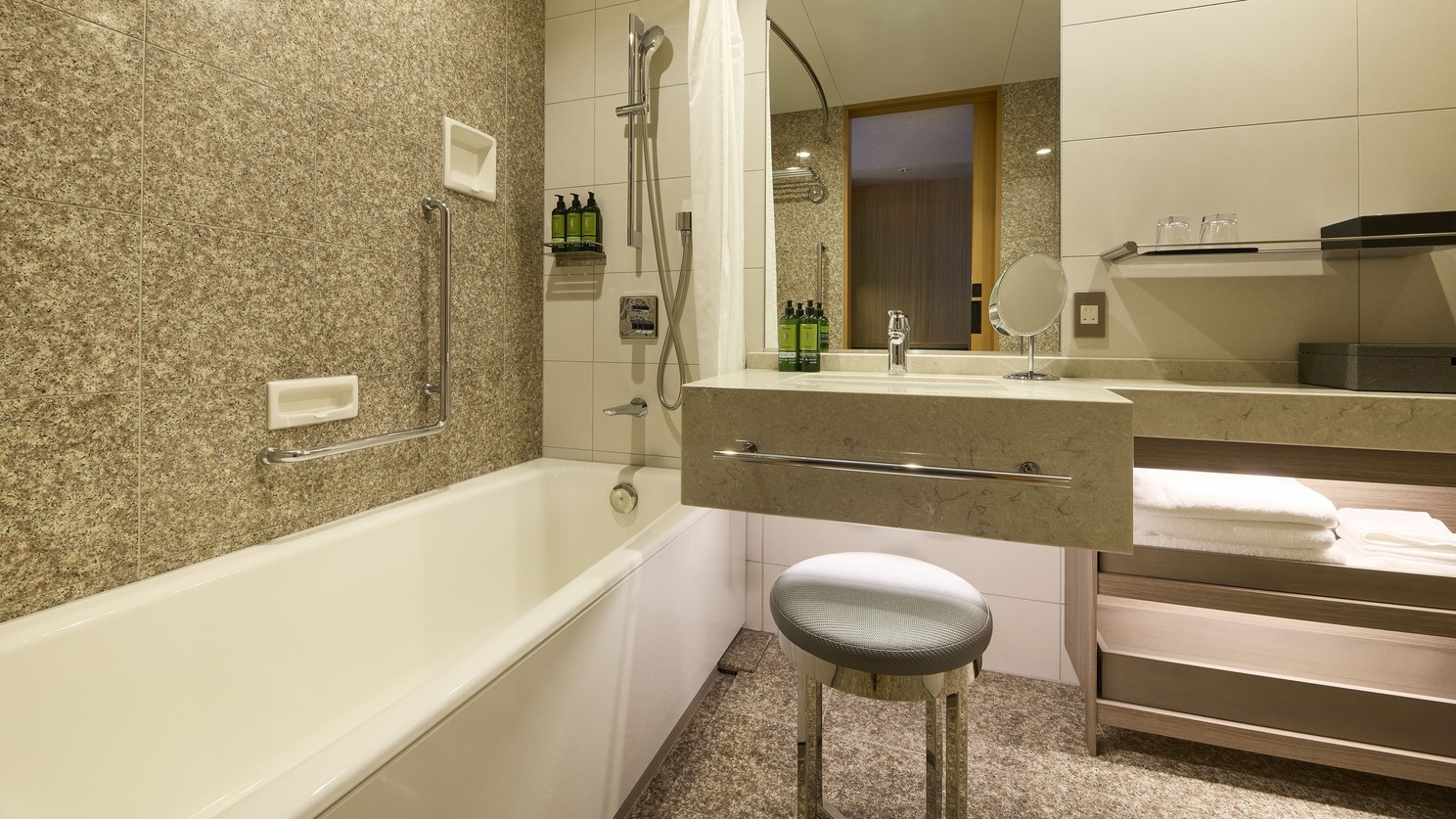 ベッドサイズ: 幅240cm × 長さ205cm × 1台 ※3名様でご利用の場合は、エキストラベッド1台をお部屋にお入れいたします。 バスルーム: バスタブ
