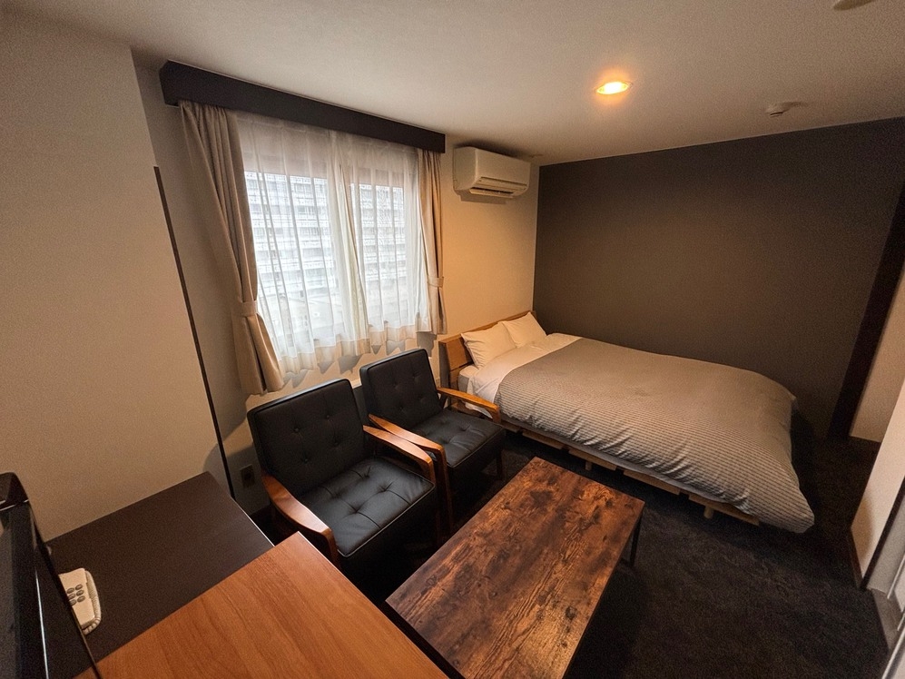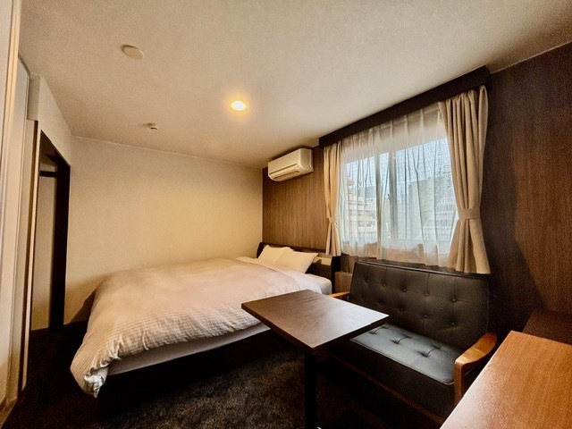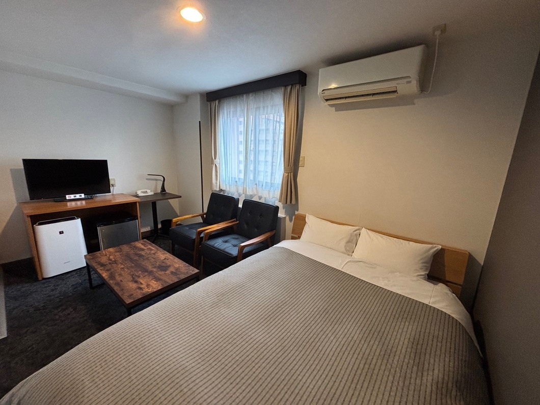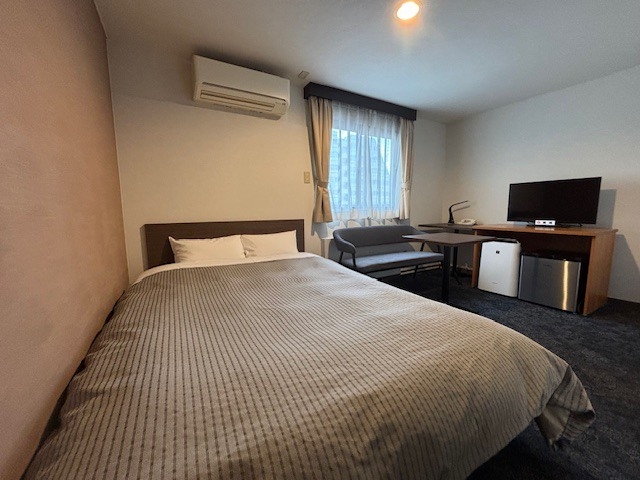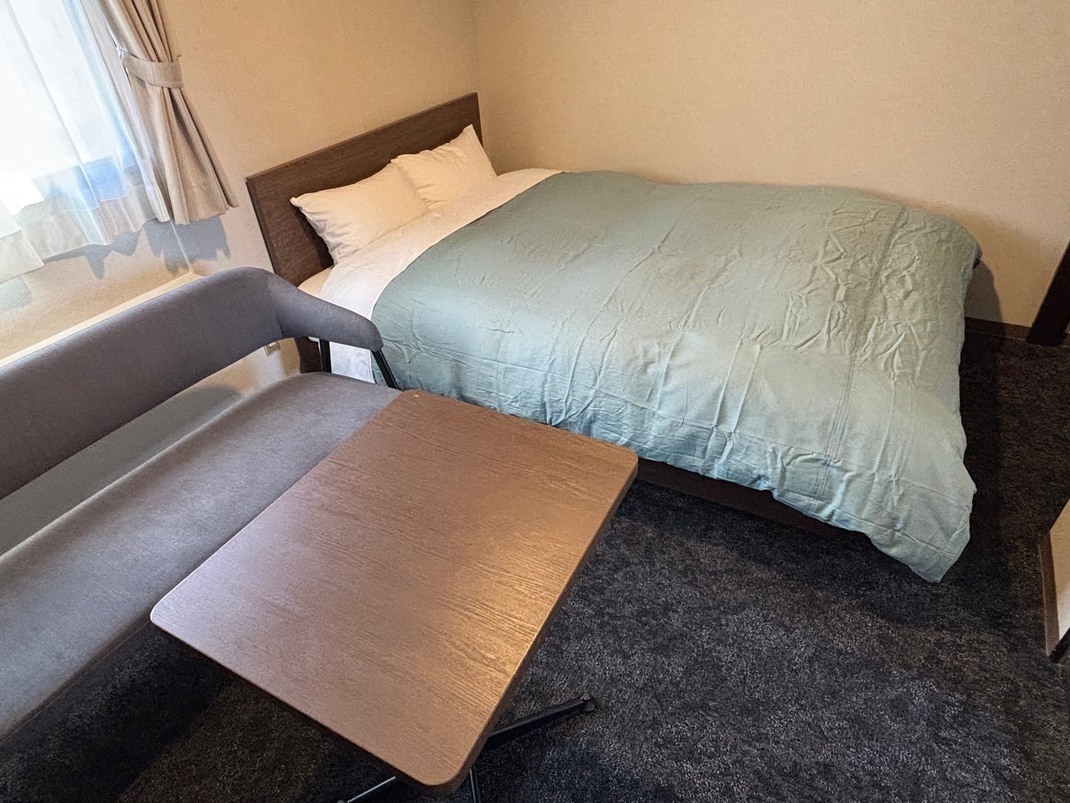 ベッド幅1900×1400のダブルルーム。1人〜2人での利用に最適です。