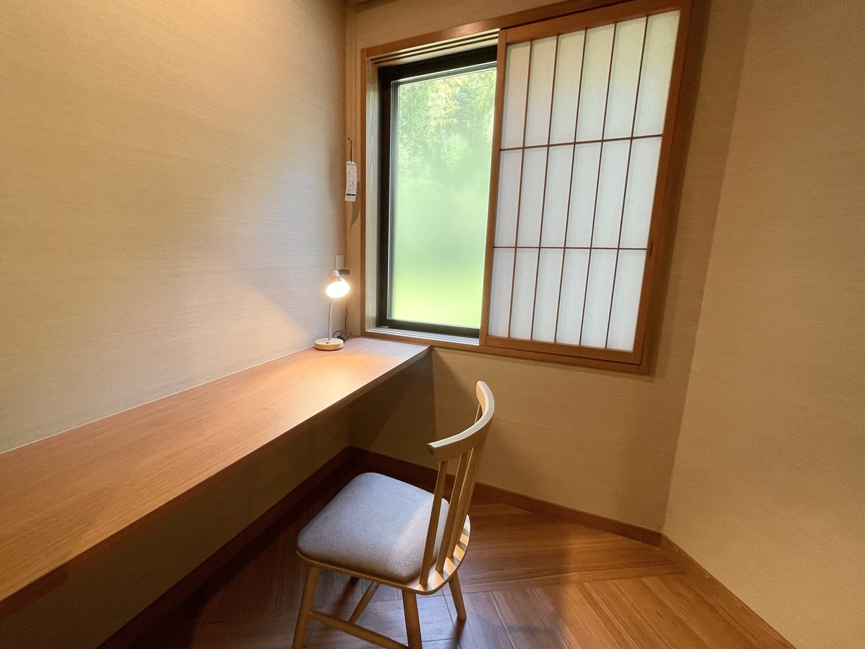 令和6年リニューアル!新しく広いお部屋で2間付きです。倉橋建築計画事務所竹内氏のデザインセンスも◎。信頼のフランスベッド製のセミダブル。ワーケーションデスク付。
