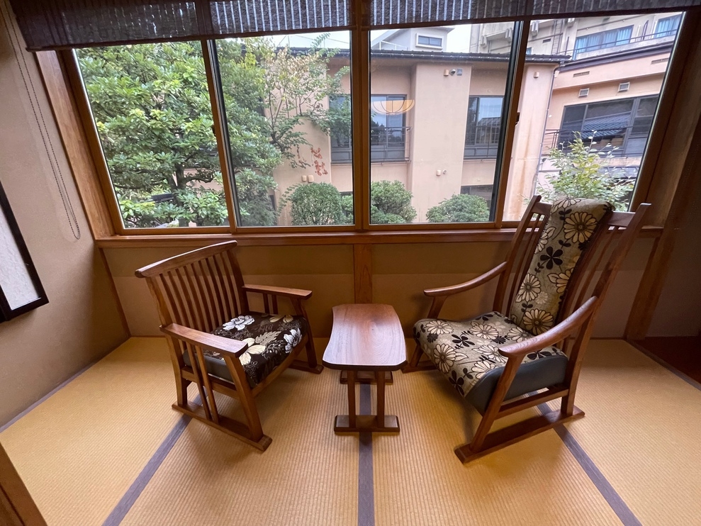 上階(寝室・リビング)が10畳の和室、下階が8畳のフローリング(マッサージチェアが2)で2階建ての構造。温泉風呂と洗面が上階。トイレ、テレビ、冷蔵庫等は上下階。