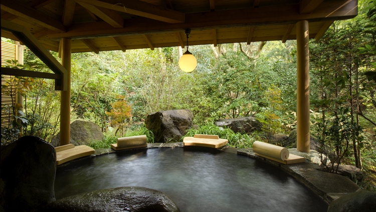 男女ともに大浴場と露天風呂、貸切家族風呂、四季折々の風情を愛でながら、三本の自家源泉(毎分550リットル、51.8度)かけ流しの天然温泉をお楽しみいただけます。
