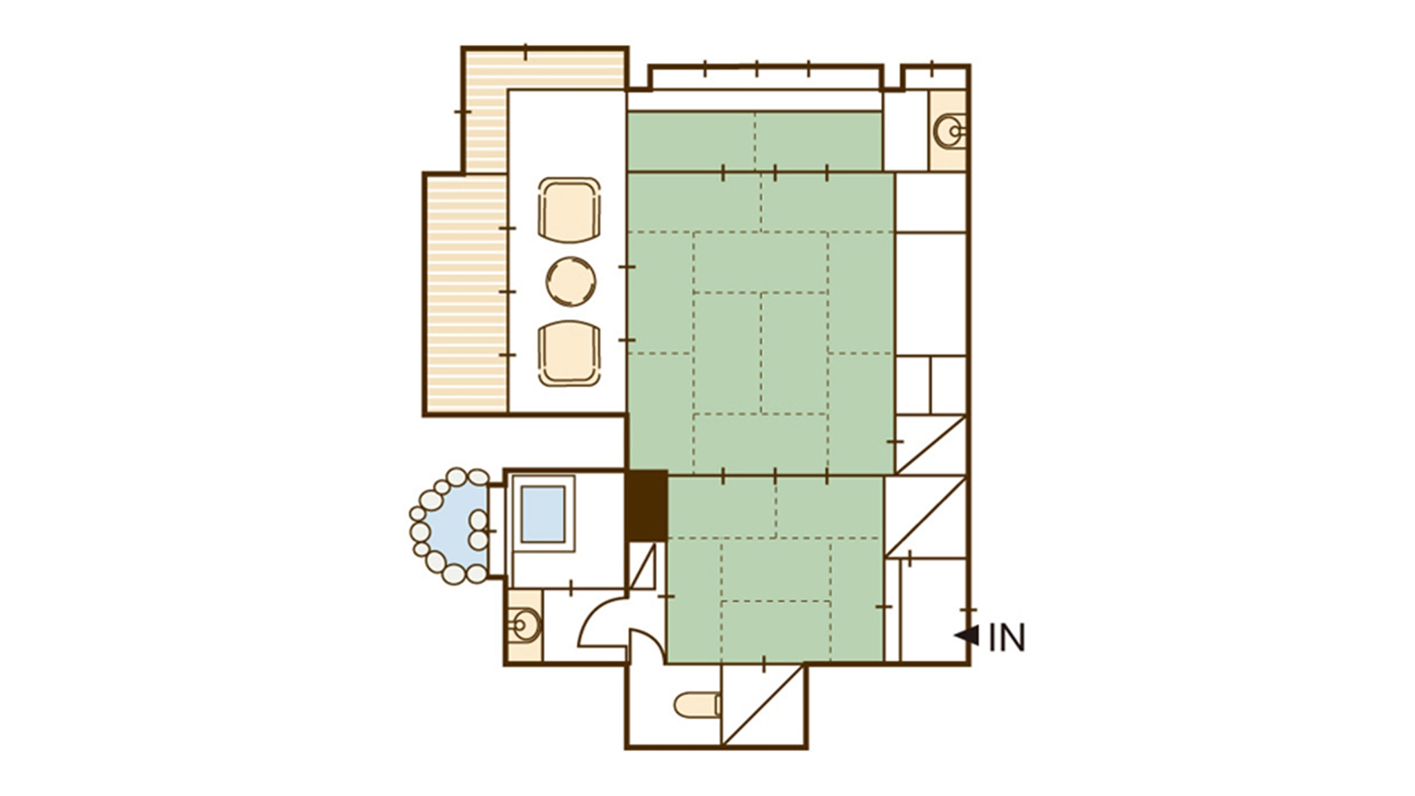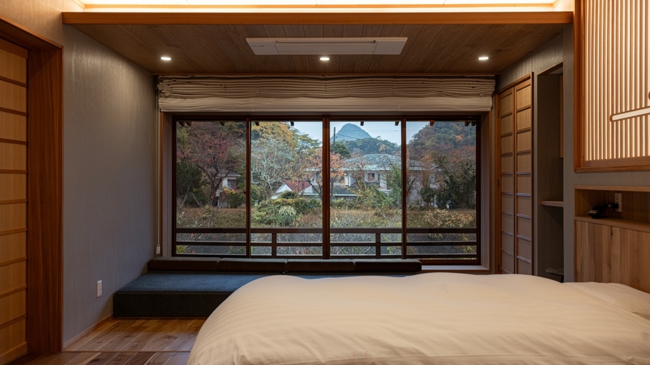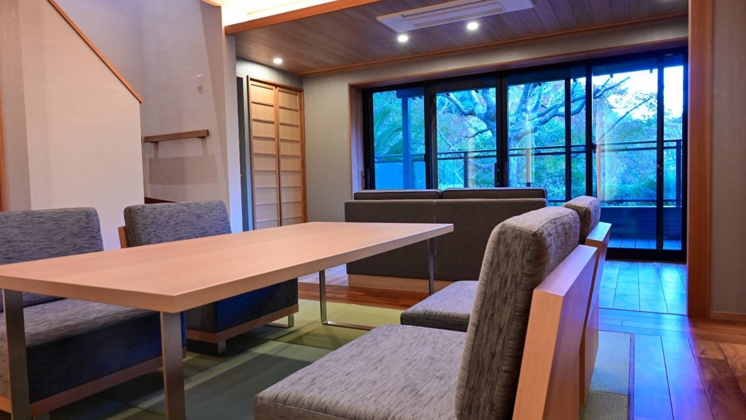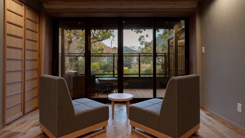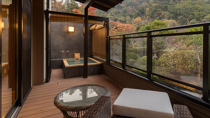 当館でも人気の高い客室。純和風の佇まいに客室専用露天風呂付。誰も気にすることなく自然を満喫しながら温泉と癒しの旅をご提供