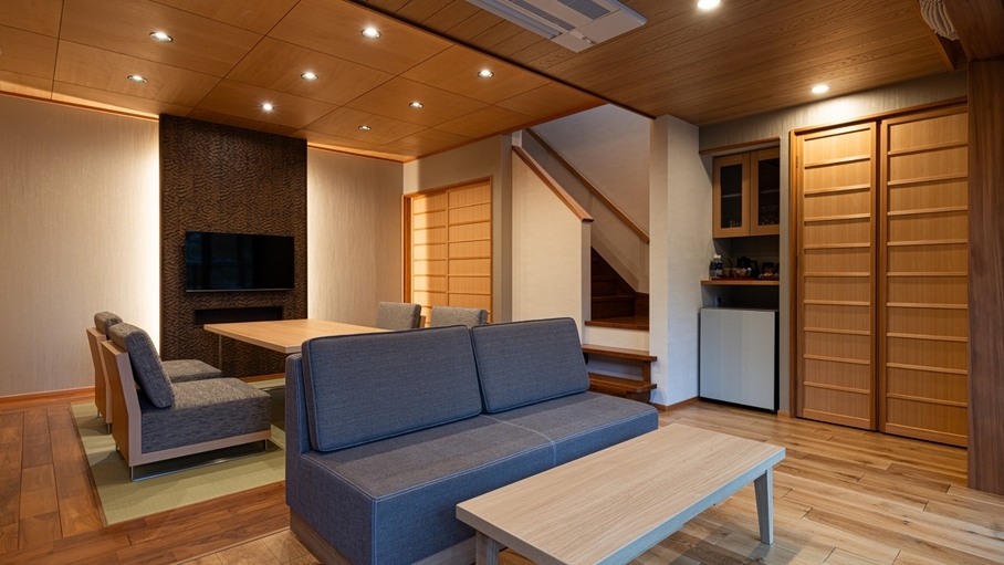 静寂をデザインしたメゾネットスイート。客室特典インクルーシブ:ハーフボトル含む冷蔵庫内フリードリンク・夕食時フリードリンク ※ボトル除く