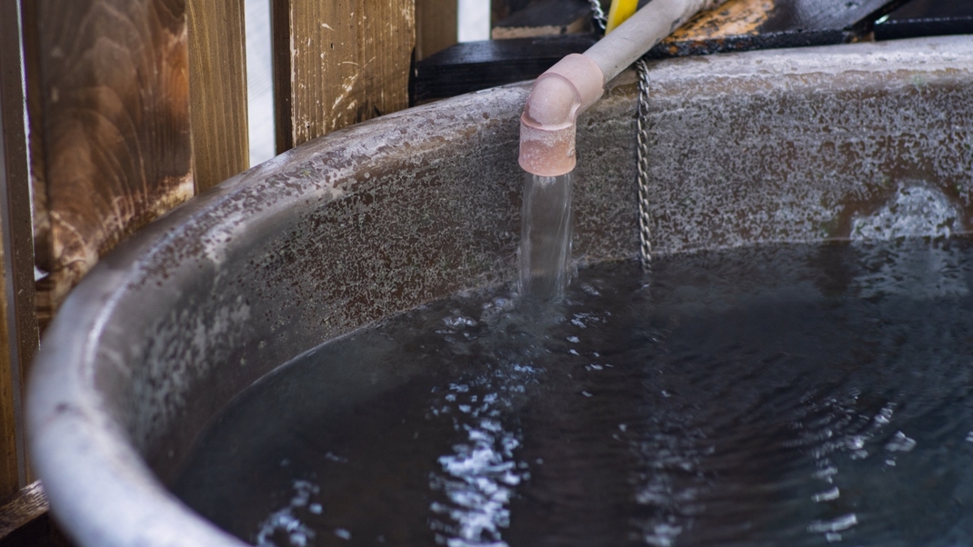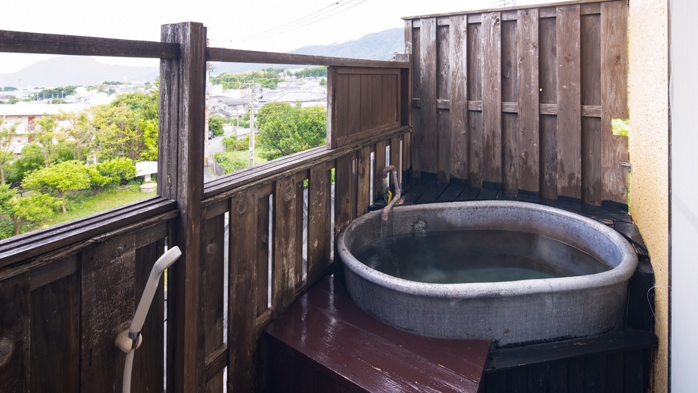 本館和室8畳または16畳相当 源泉掛け流しの露天風呂(大人2名もゆとりのサイズ) トイレ・冷蔵庫・タオル・浴衣【現地でのお支払いは現金のみ】