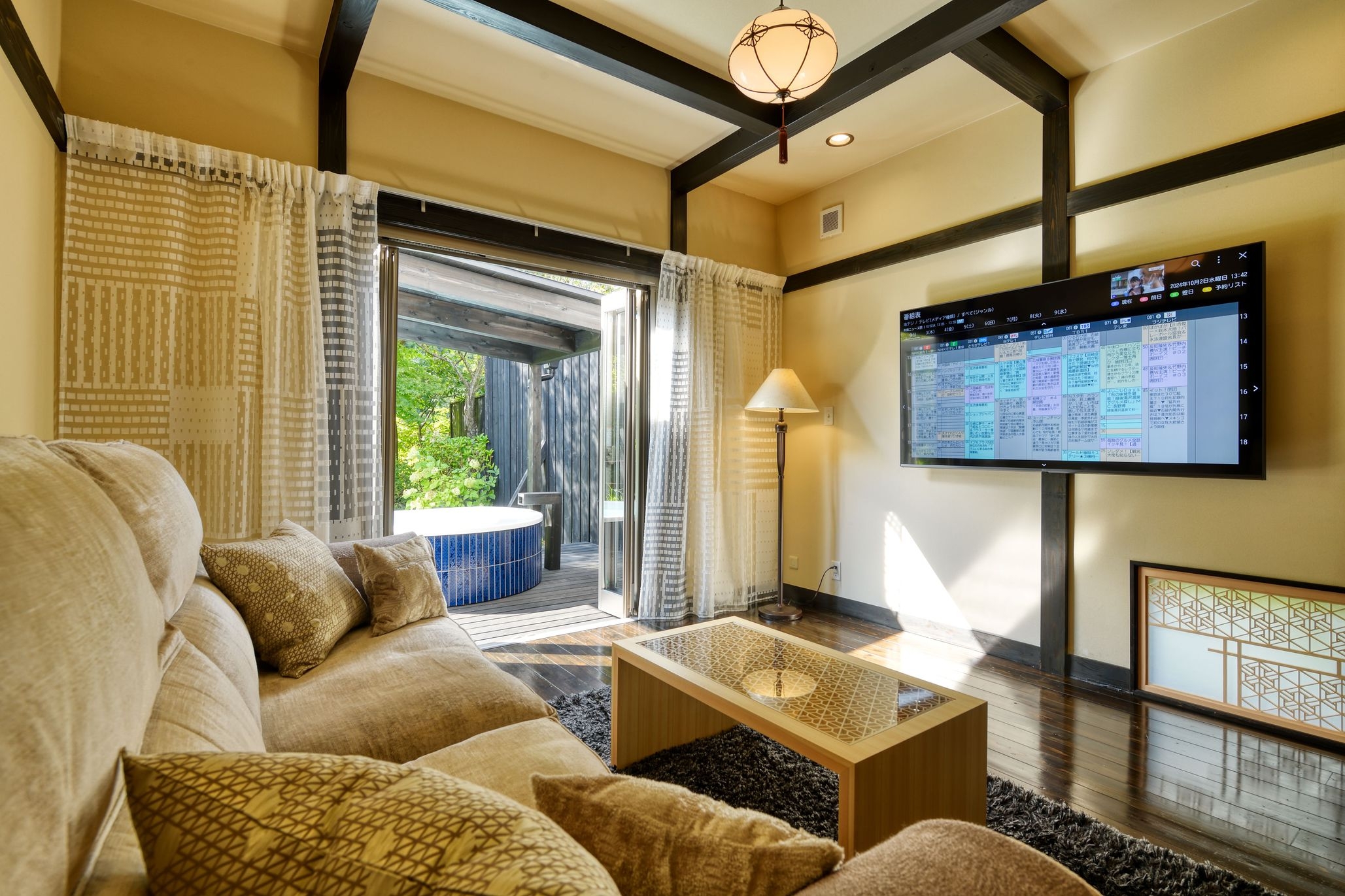 【禁煙ルーム】古民家調の特別室。プライベートガーデンを臨む2つの温泉露天風呂付の離れタイプ