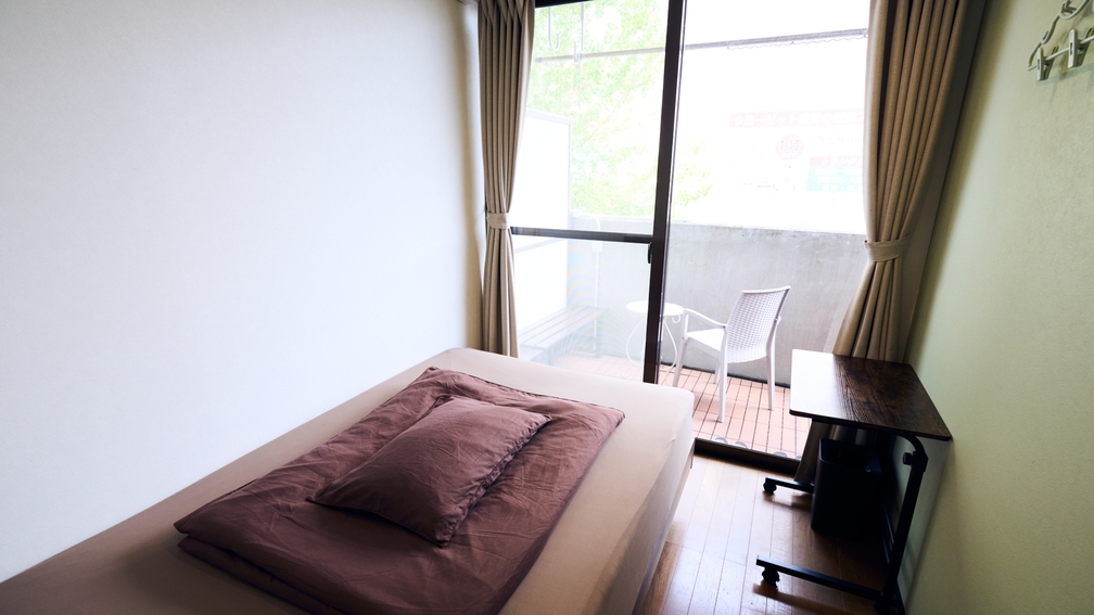 4.5畳弱のお部屋に、セミダブルサイズのマットレスが一台配置されています。 最大2名様まで。喫煙される方(バルコニー付)やカップルなどにお勧めです。