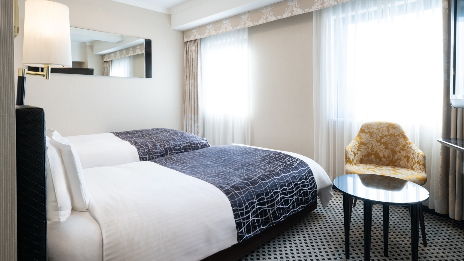 シーリー社製高級ベッド120cm幅×2台/Wi-Fi接続無料/大型液晶TV完備/ふんわりやわらか高級羽毛布団完備/ウォシュレット完備