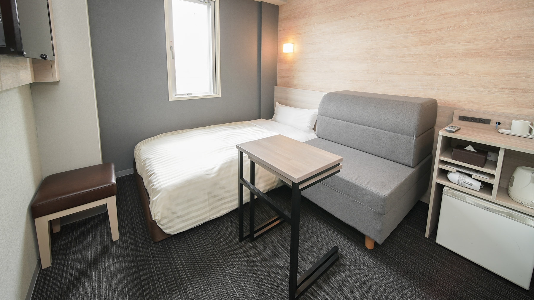 2023年3月リニューアル済!120cm幅のセミダブルベッドと、90cm幅のソファベッドのある【エキストラツインルーム】でございます♪