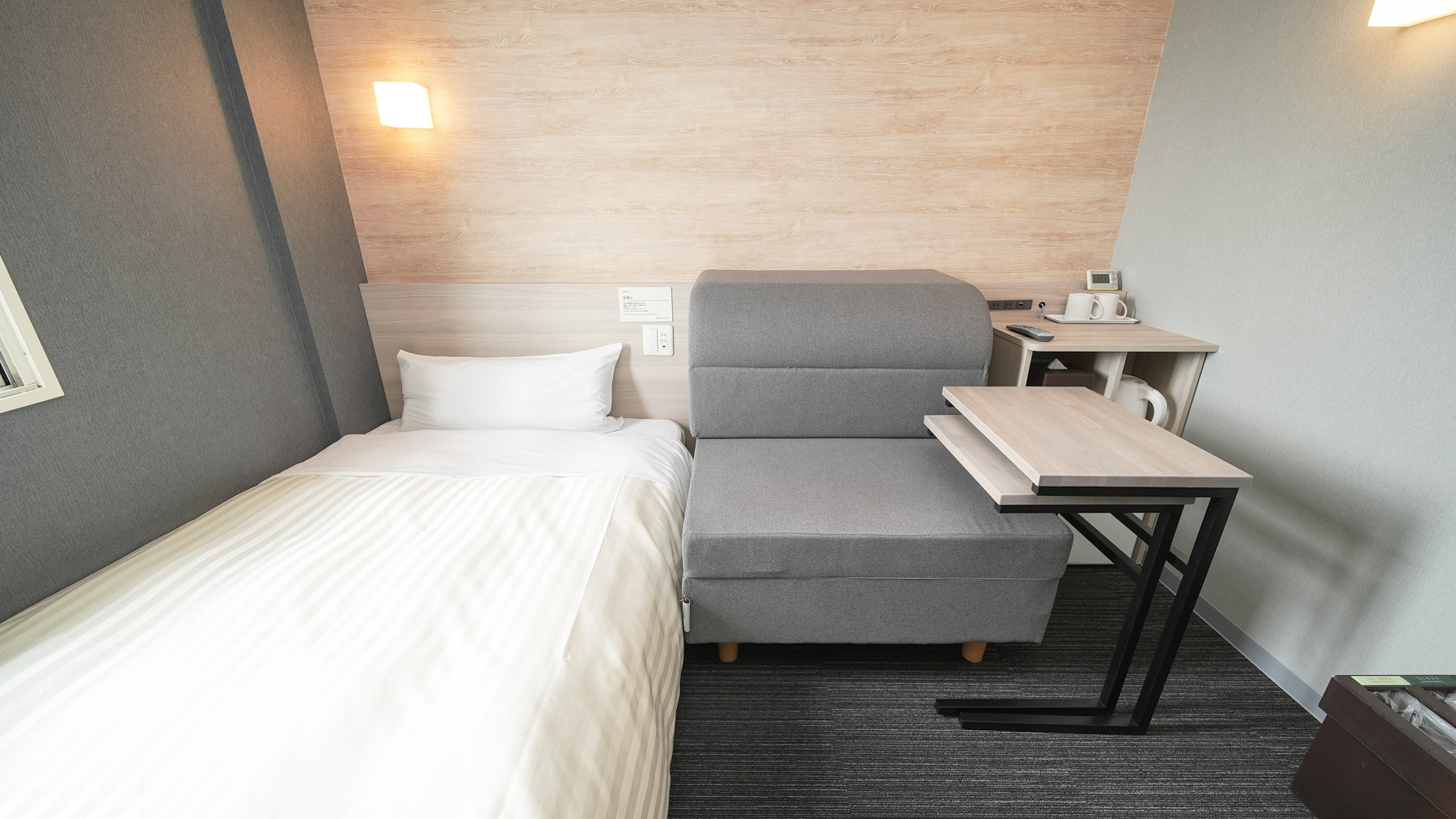 120cm幅ベッドとソファのある【ソファ付きルーム】でございます♪