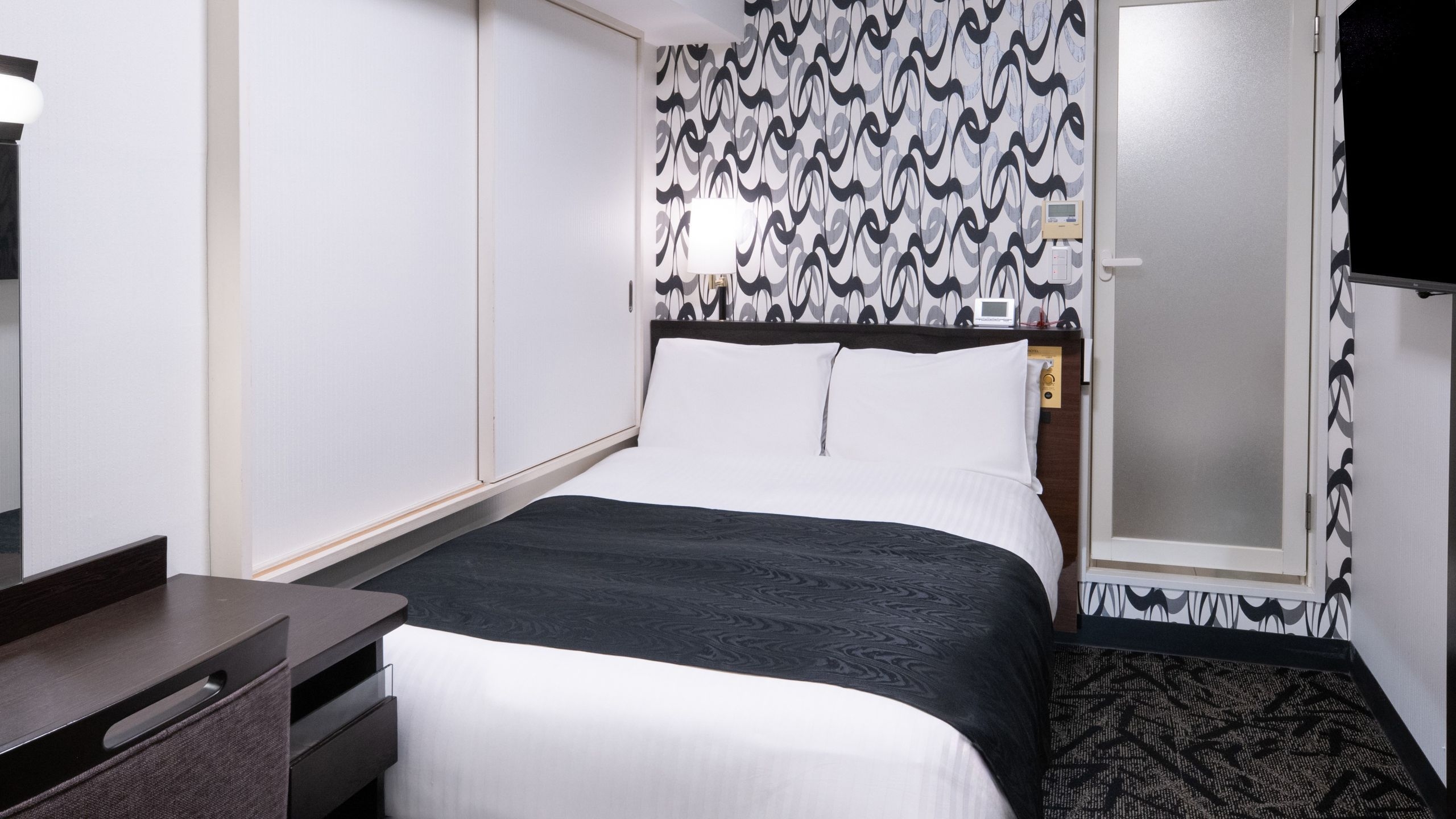 ダブル :広さ10平米 ベッド幅140cm×1台/Wi−Fi完備(高速有線LAN完備)/50型液晶TV/VODアパルームシアター無料/ふんわりやわらかデュべ