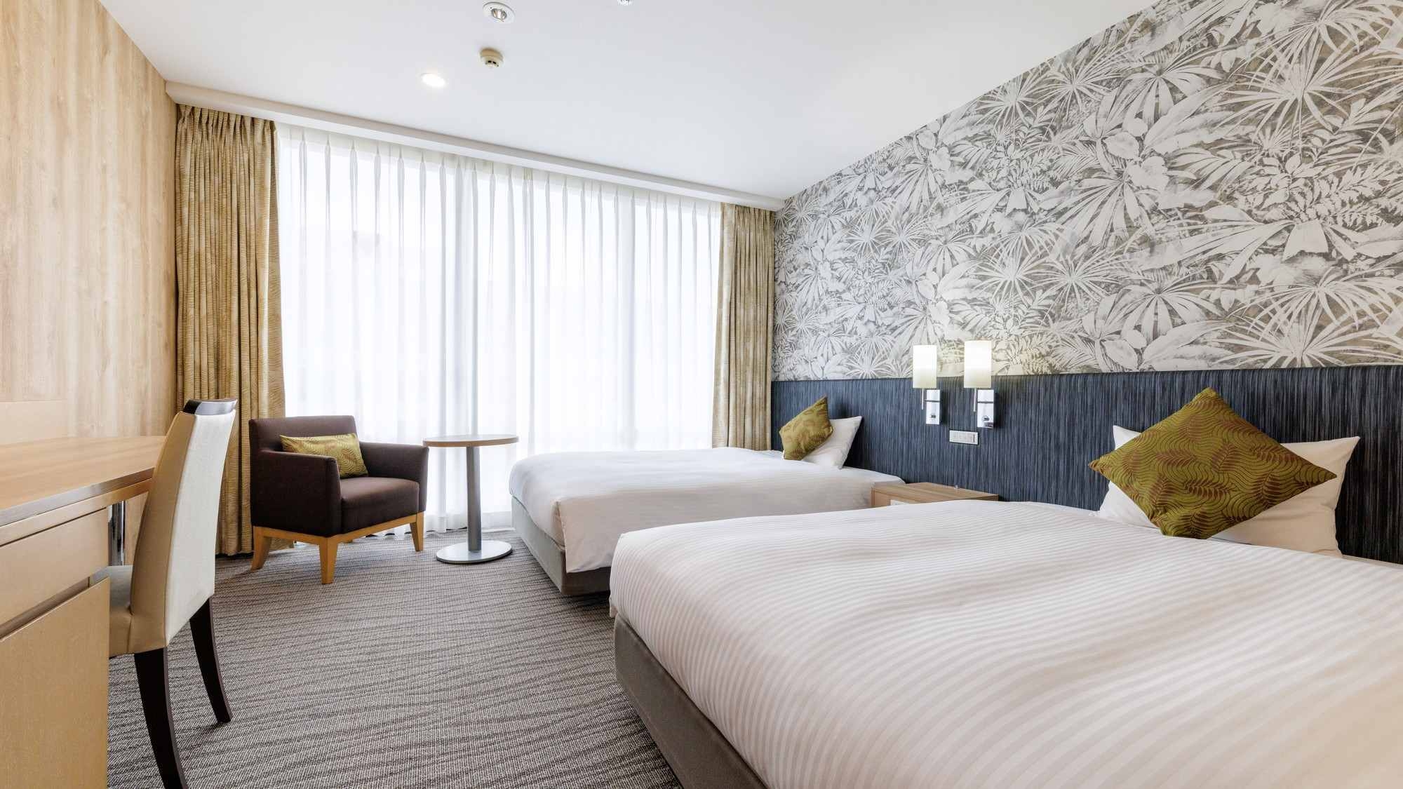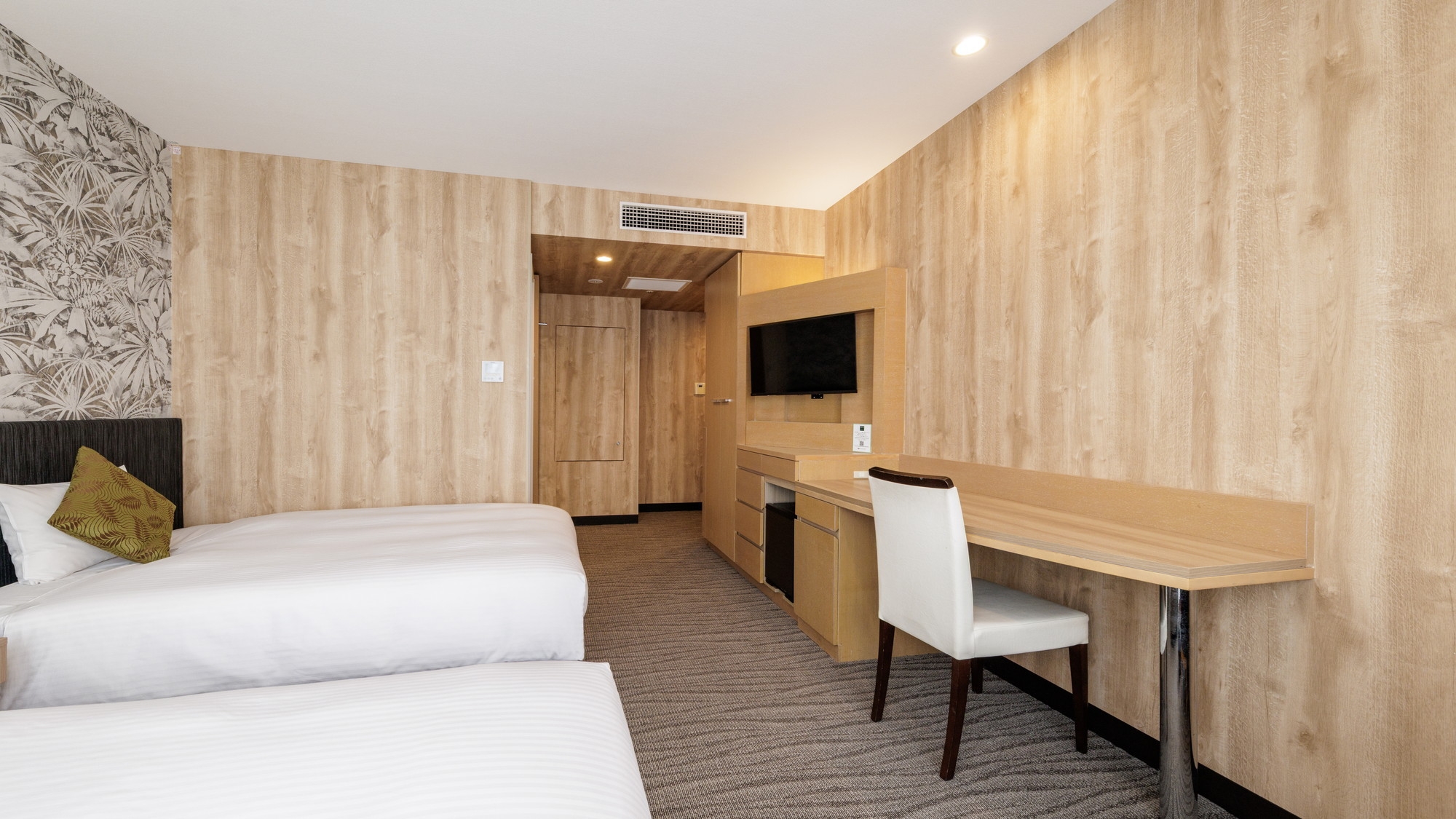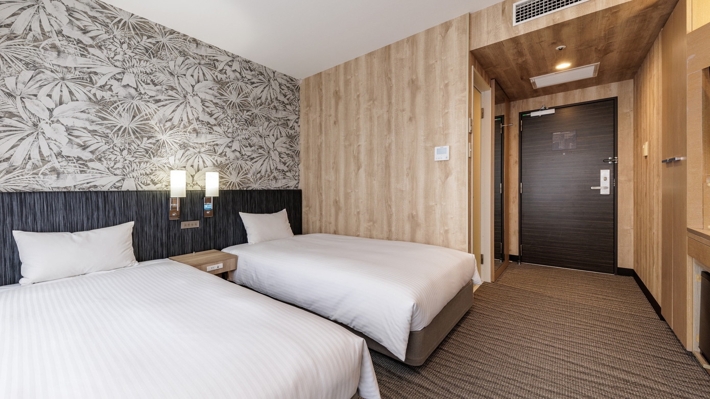 18.8平米のお部屋にシモンズ社製ベッド2台(幅:約110cm)室内バスルーム:ユニットバスタイプ
